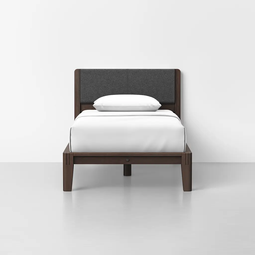 The Sawyer Brown Walnut Queen Upholstered & Wood Platform Bed with LED Lights combines modern design with functional features to transform your bedroom. Crafted by The Essentials, this bed offers a stylish medium walnut finish and a durable construction using walnut veneer, solid rubberwood, and faux leather. The adjustable base compatibility and built-in LED lights add convenience and ambiance to your sleeping environment.