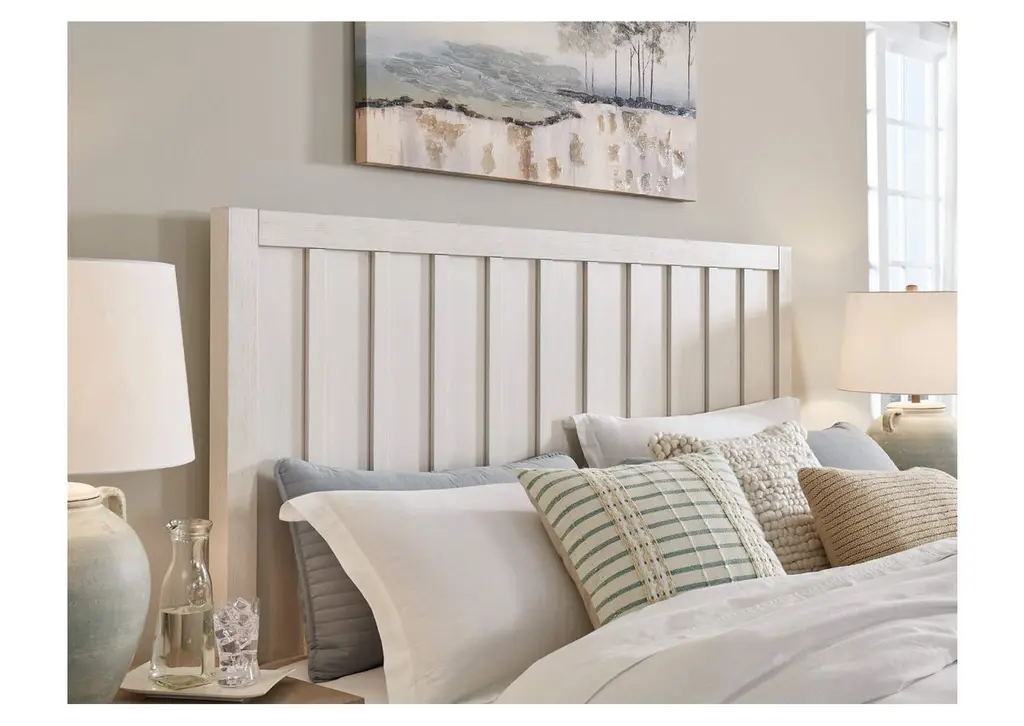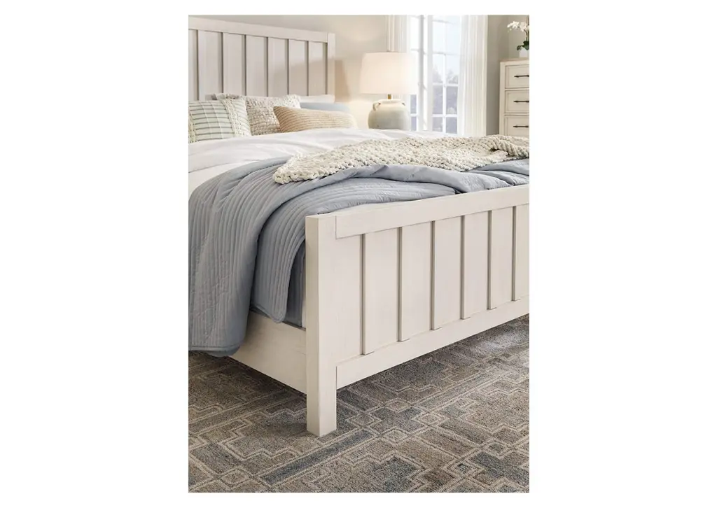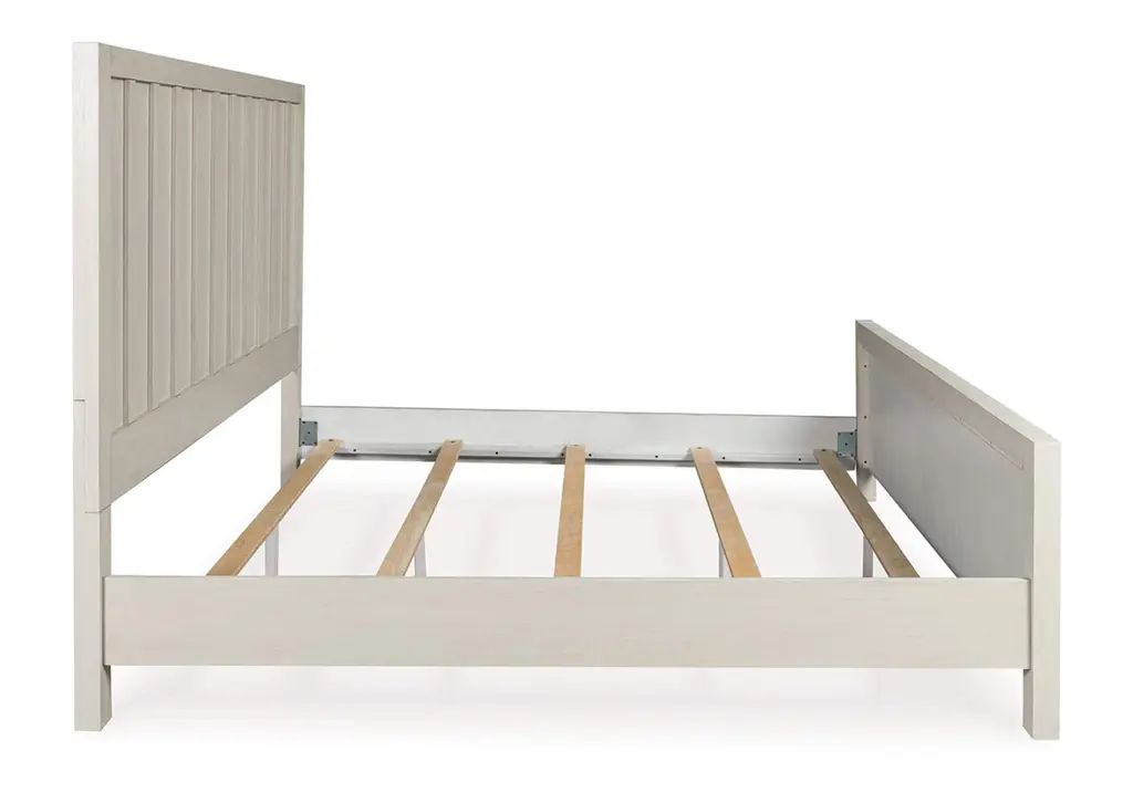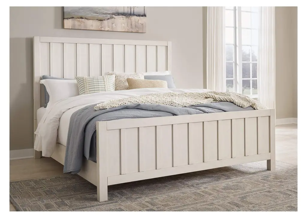 The Shaybrock king panel bed elevates the art of modern farmhouse design. Its antiqued white finish and barn sash styling infuse plenty of charm. Conveying a feeling of relaxed comfort, this bed is sure to carry you away to a dreamy time and place. Weight 204.000 lbs. (91.8kgs.)