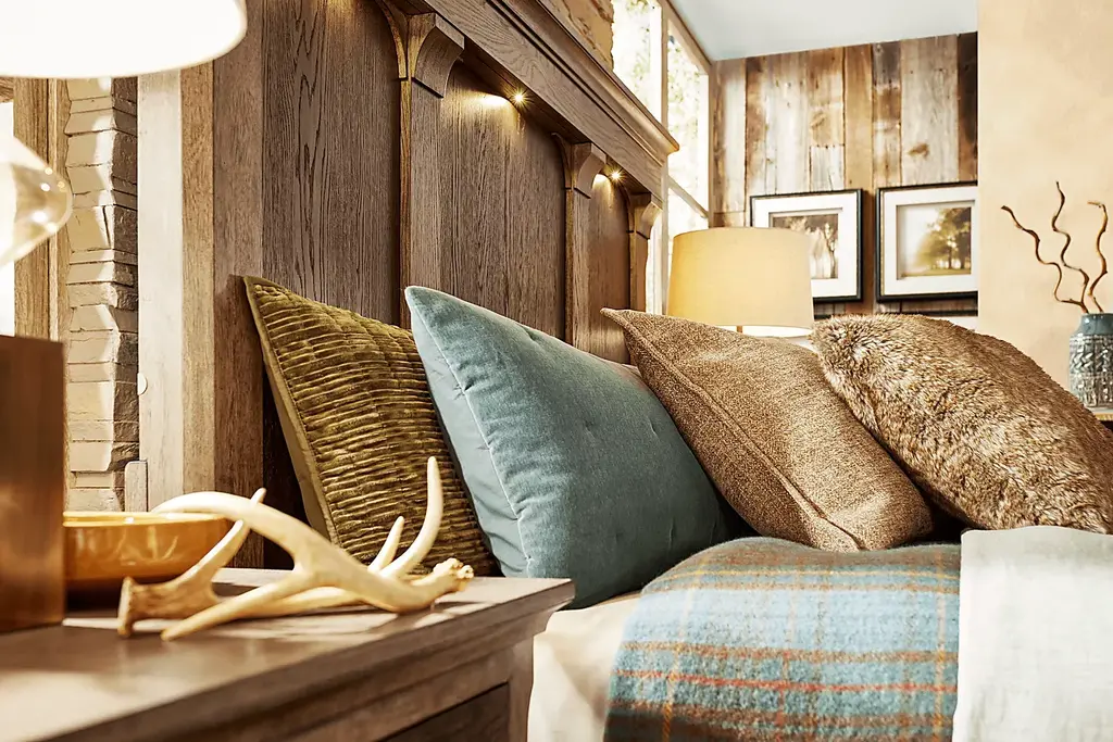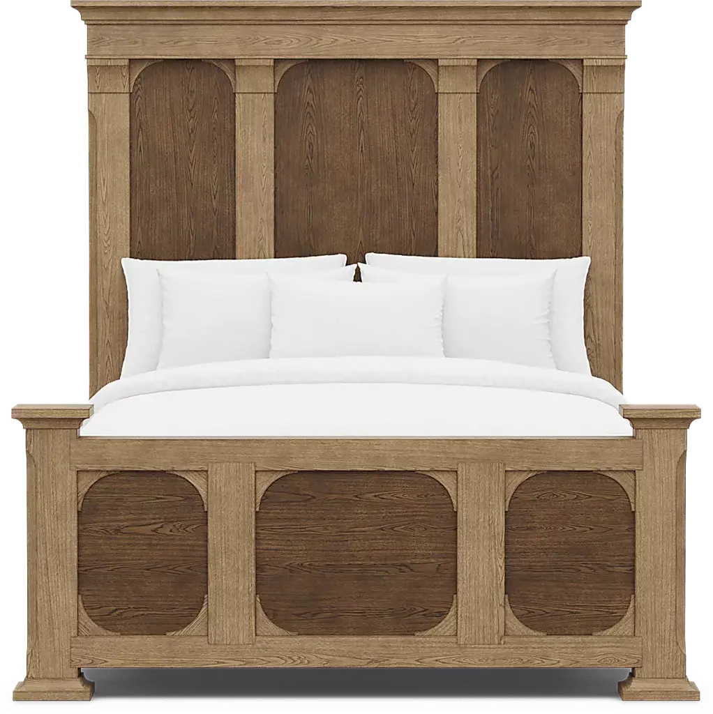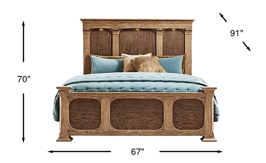 Quiet mornings and unwinding into restful evenings comes effortlessly with the Telluride collection from Cindy Crawford Home, creating a tranquil retreat through warm tones and comforting details. Designed to highlight the natural intricacies of its wood grain look, this traditional bed is crafted with oak veneers in a beautifully layered two-tone finish of light and dark brown. The headboard, framed by contrasting pillars and cove molding, features integrated LED lighting that accentuates each panel with a soft, luxurious glow. The footboard echos this design while adding elegant newel post details for a sophisticated touch. Mattress and foundation (if required) sold separately.