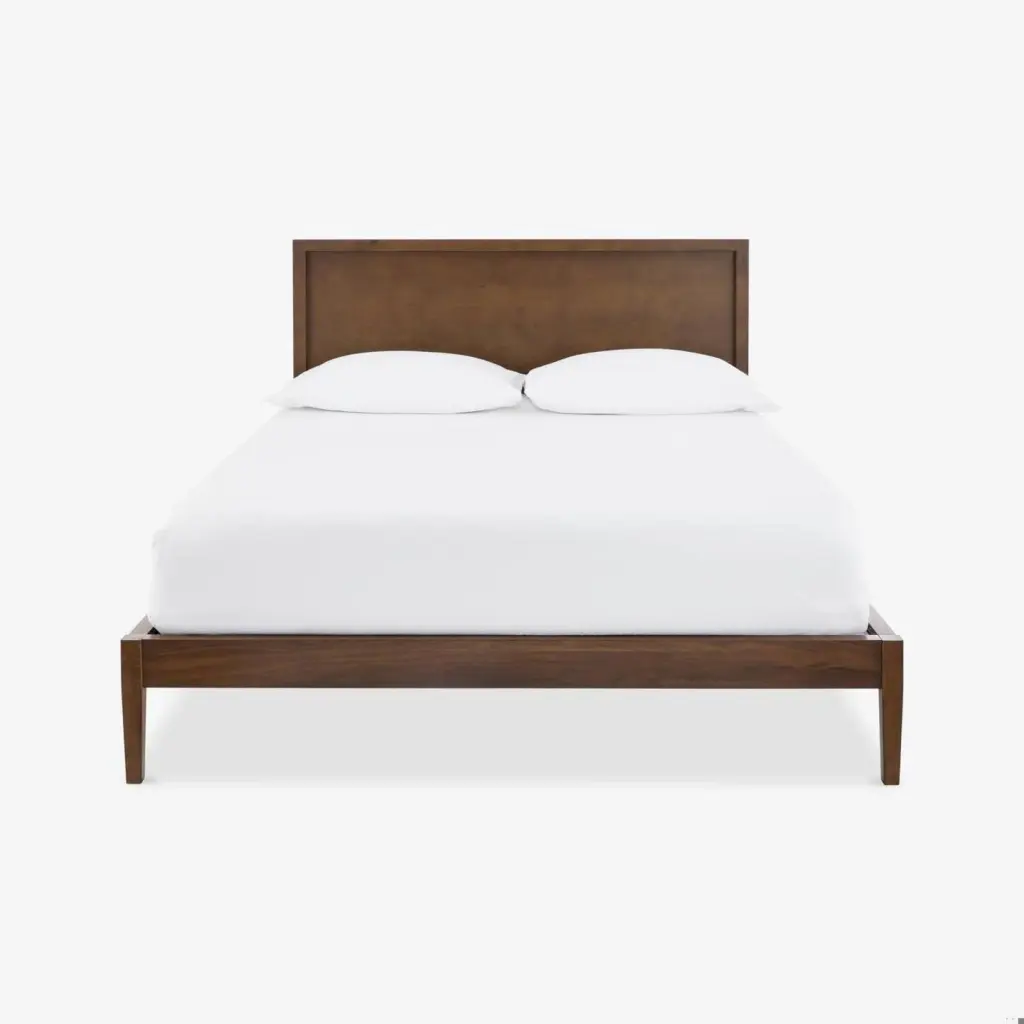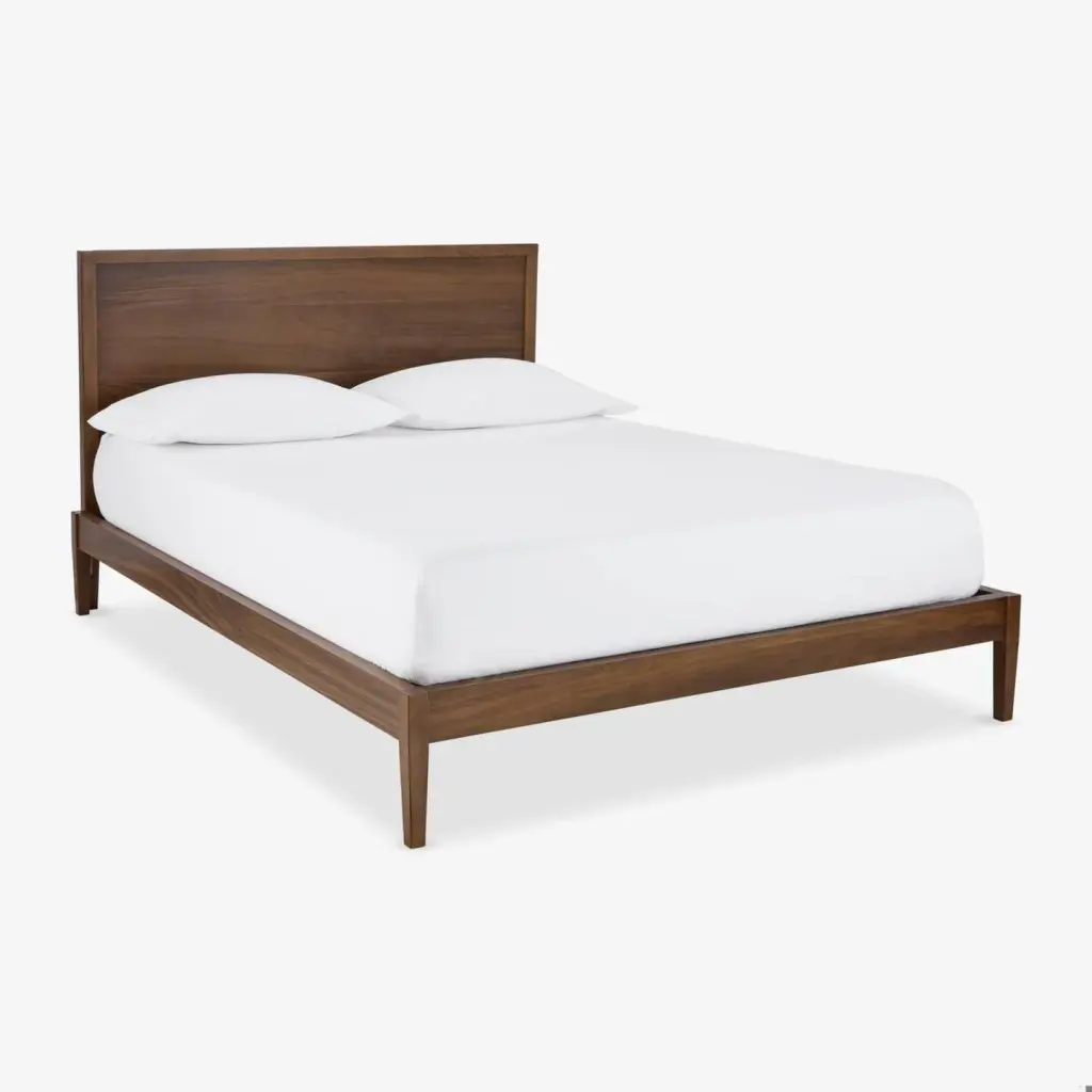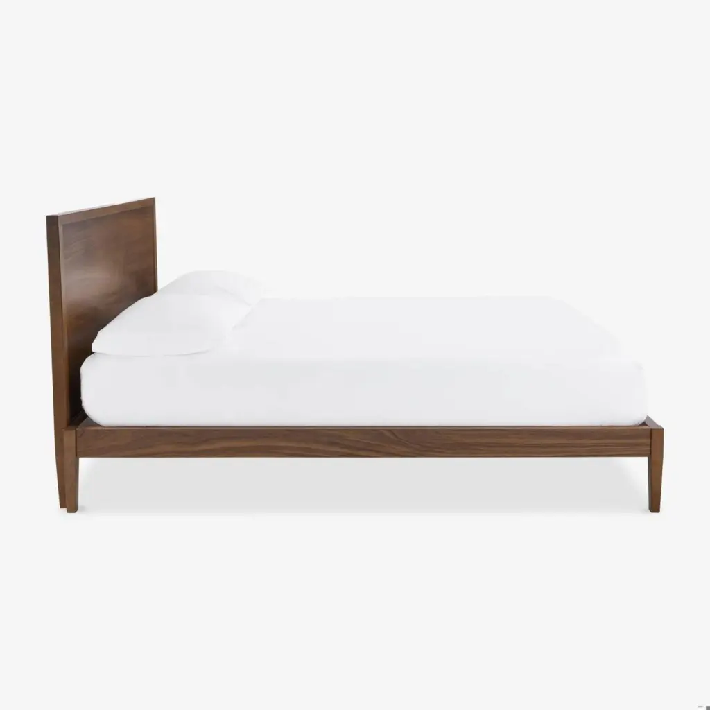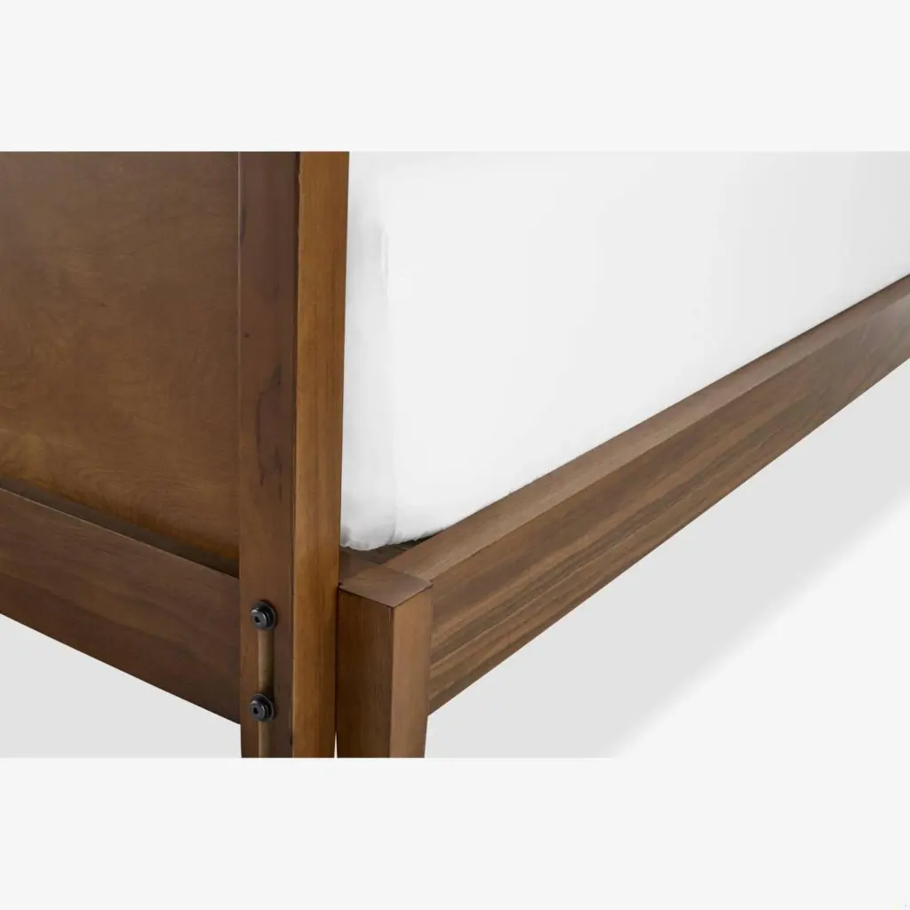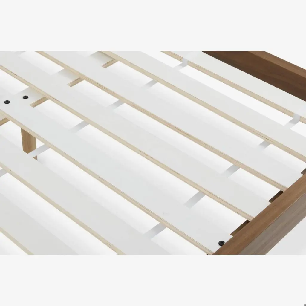 The Thompson Panel bed is perfect for any room that needs sprucing up. The sharp lines and walnut finish give a subtle nod to effortless modern design. Bed clearance 8". Distance between slats 3". Mattress not included.