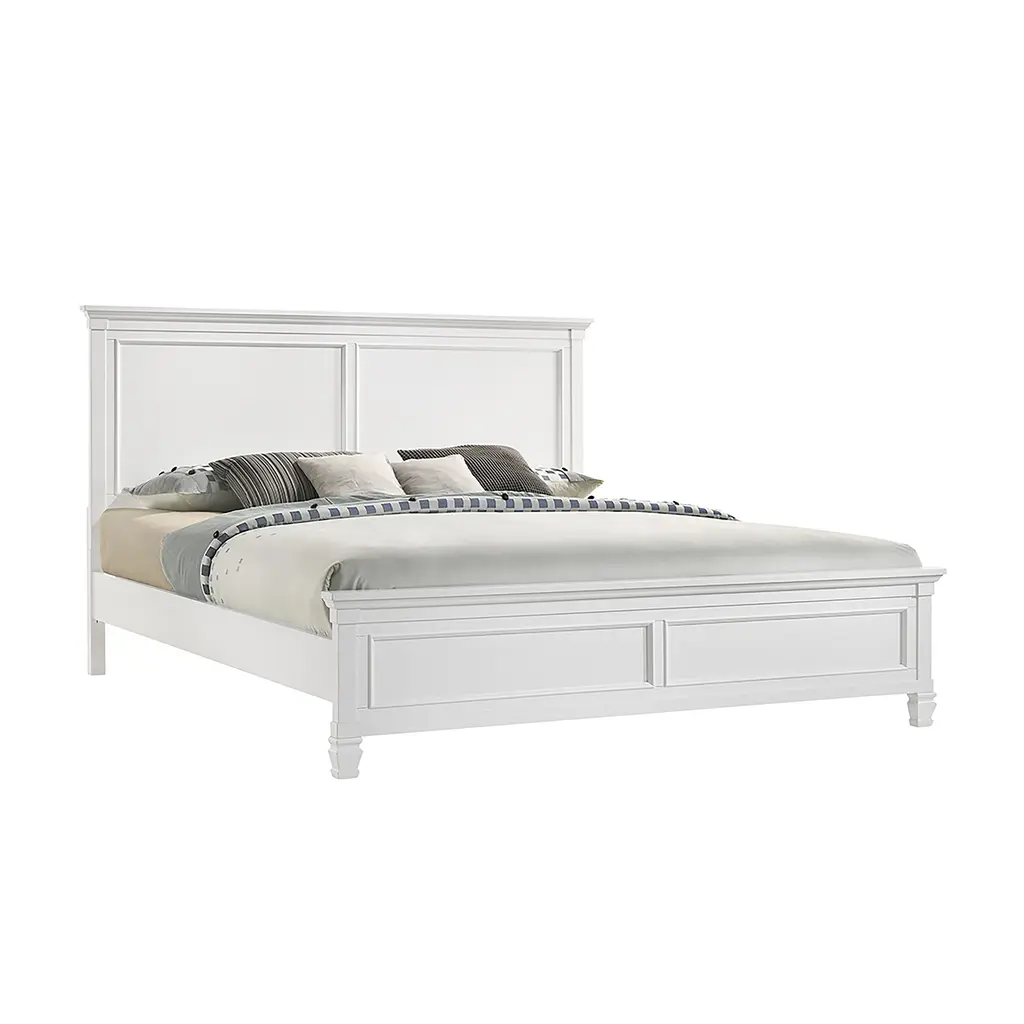 This transitional queen bed is the perfect addition for anyone looking to add a bit of timeless style to their bedroom. This bed features a crowned headboard with panel molding that carries through the footboard for an embellished yet refined look.