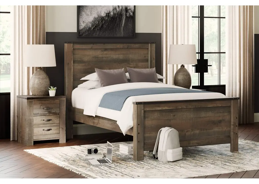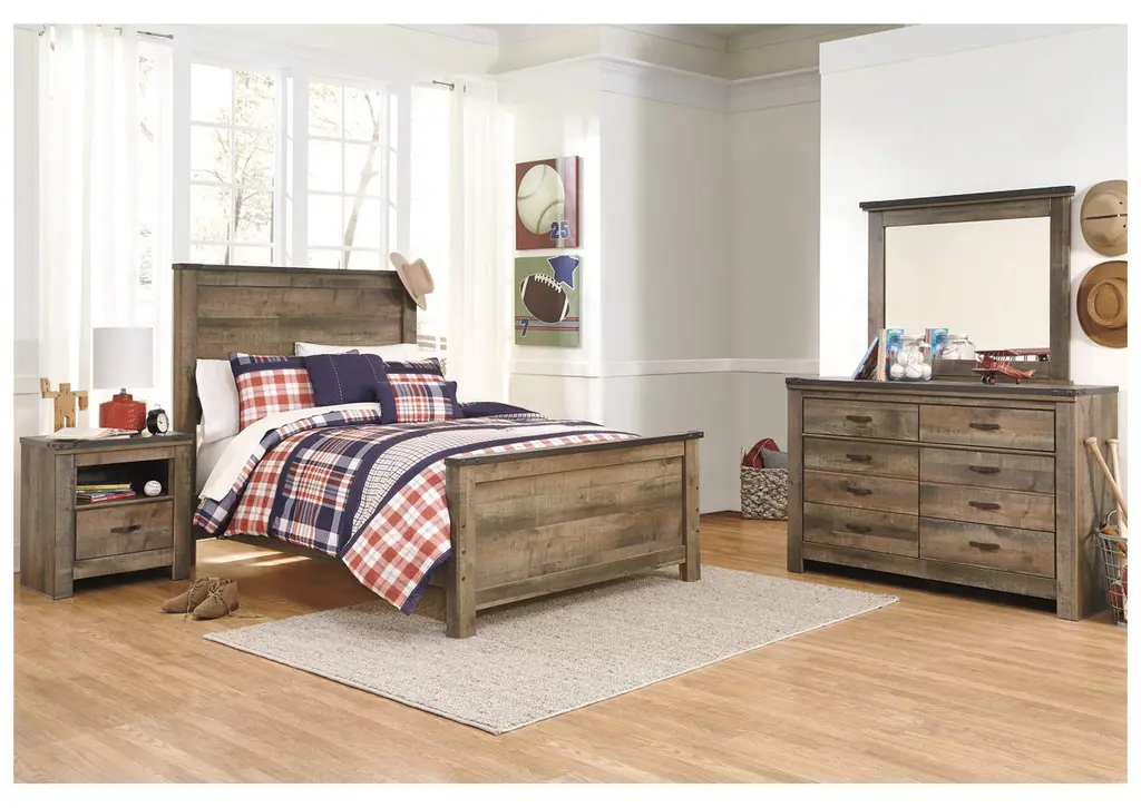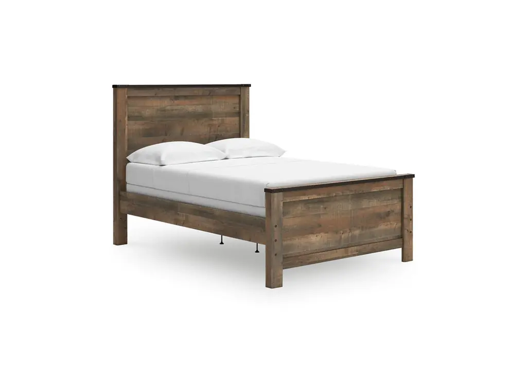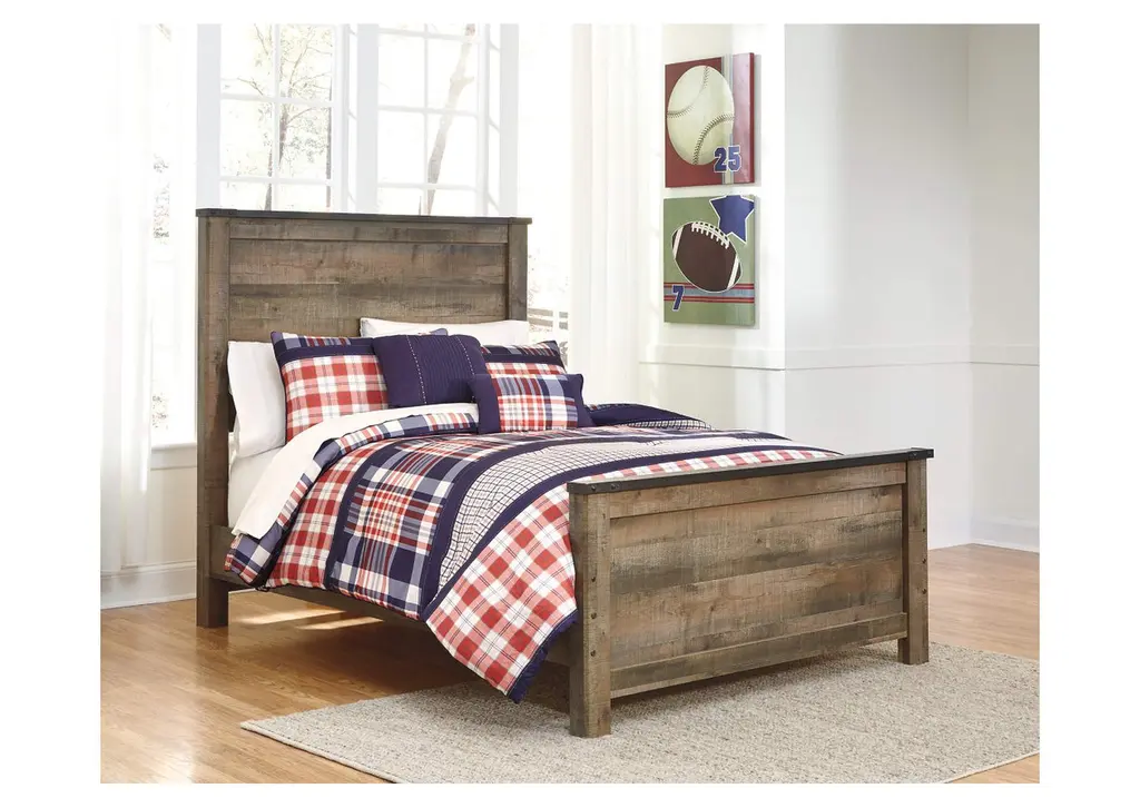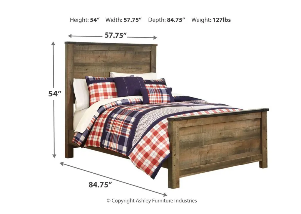 Whether she loves horses or he's a cowboy at heart, the Trinell full panel bed matches their authentic sense of style. Its rustic finish, plank details and nailhead trim are an homage to reclaimed barn wood, making for a sophisticated, vintage-chic look. Mattress and foundation/box spring sold separately. Weight 127.000 lbs. (57.15kgs.)