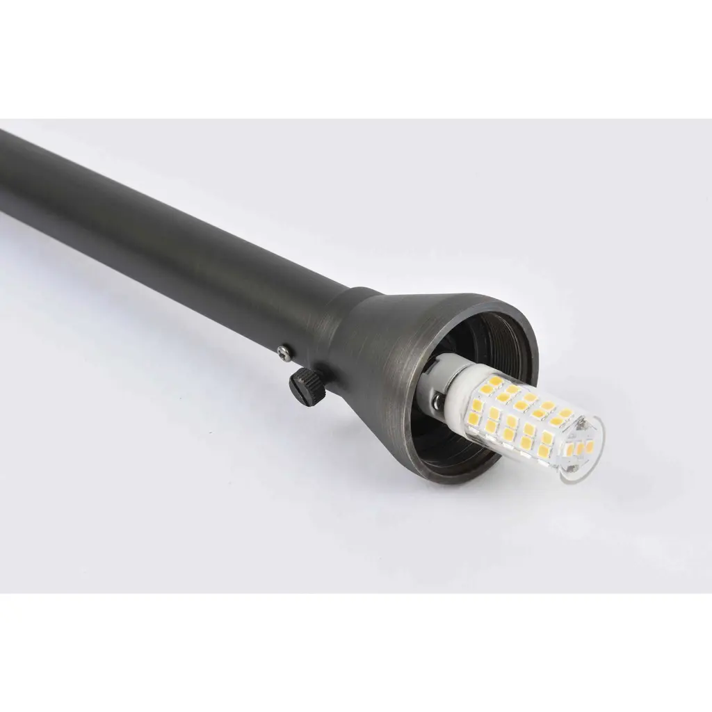 Illuminate your walkways and gardens with our premium 12-volt cast brass path lights, designed to combine durability and elegance. Featuring a stylish dark bronze finish, these path lights are crafted from high-quality cast brass, ensuring they stand up to the elements while adding a touch of sophistication to your landscape. The clear glass shade provides bright, clear illumination, perfect for enhancing visibility and safety. With an adjustable knob, you can easily direct the light to highlight your favorite outdoor features. Installation is a breeze with the included 8-inch plastic mounting stake and 3-foot pre-wired cable, giving you the flexibility to position your lights exactly where you need them. Compatible with G4 halogen bulbs up to 35 watts (not included), these path lights offer customizable brightness, making them the ideal choice for beautifully lighting your outdoor space.