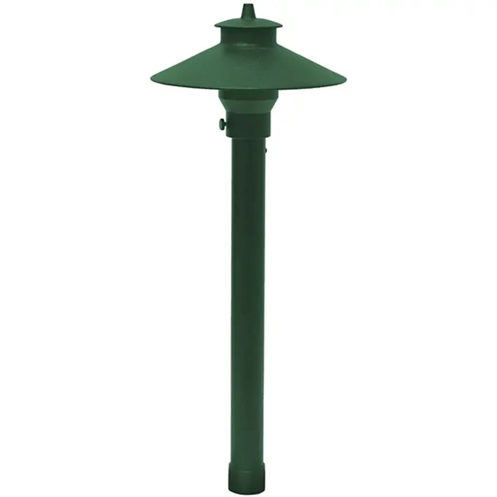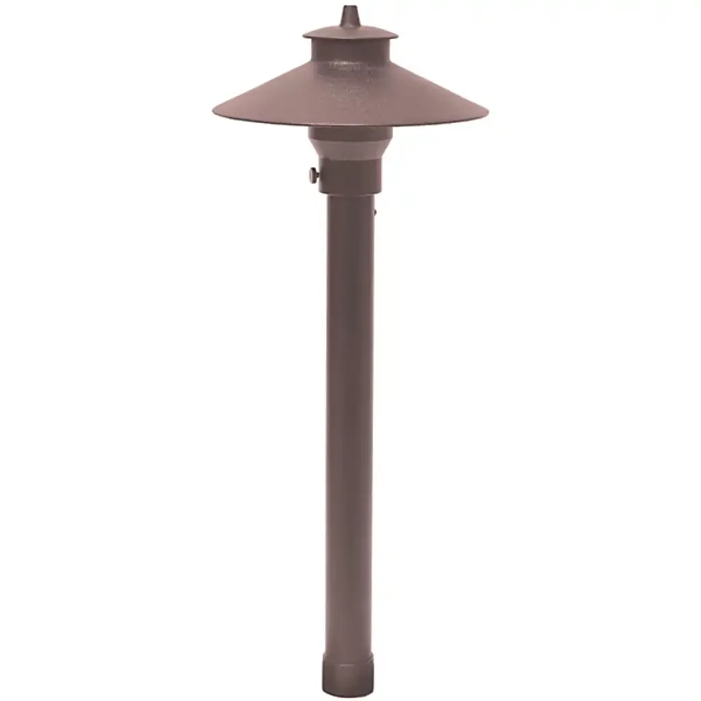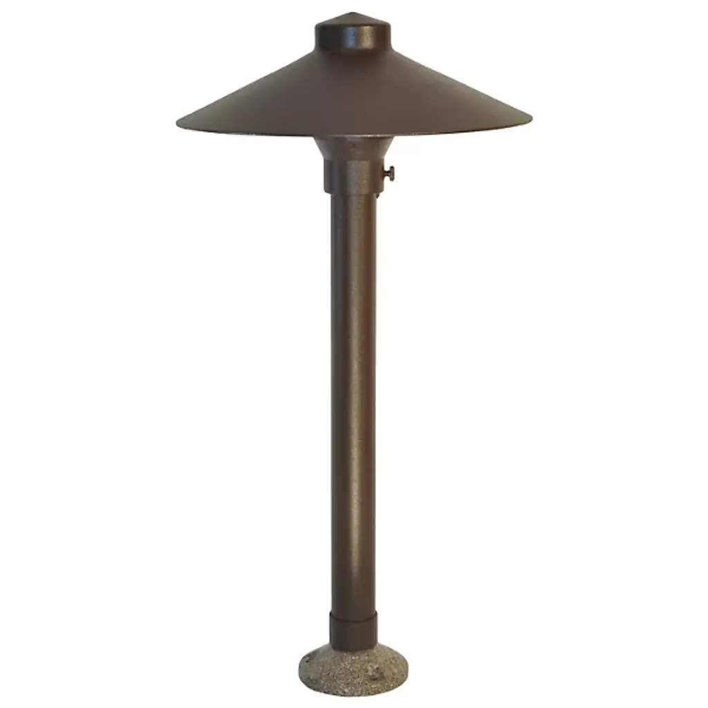 The Aluminum 9 Inch Area Light by Focus Industries is a more expansive version of the iconic China Hat Area Light. The fixture's widespread, concave form helps guide light downwards while its adjustable hub allows for the expansion of light coverage. In addition, its narrow stem has a 9” ABS stake that mounts directly into the ground, enabling you to position the fixture according to your needs. Connects to a 12v landscaping electrical system. Transformer is necessary but not included.