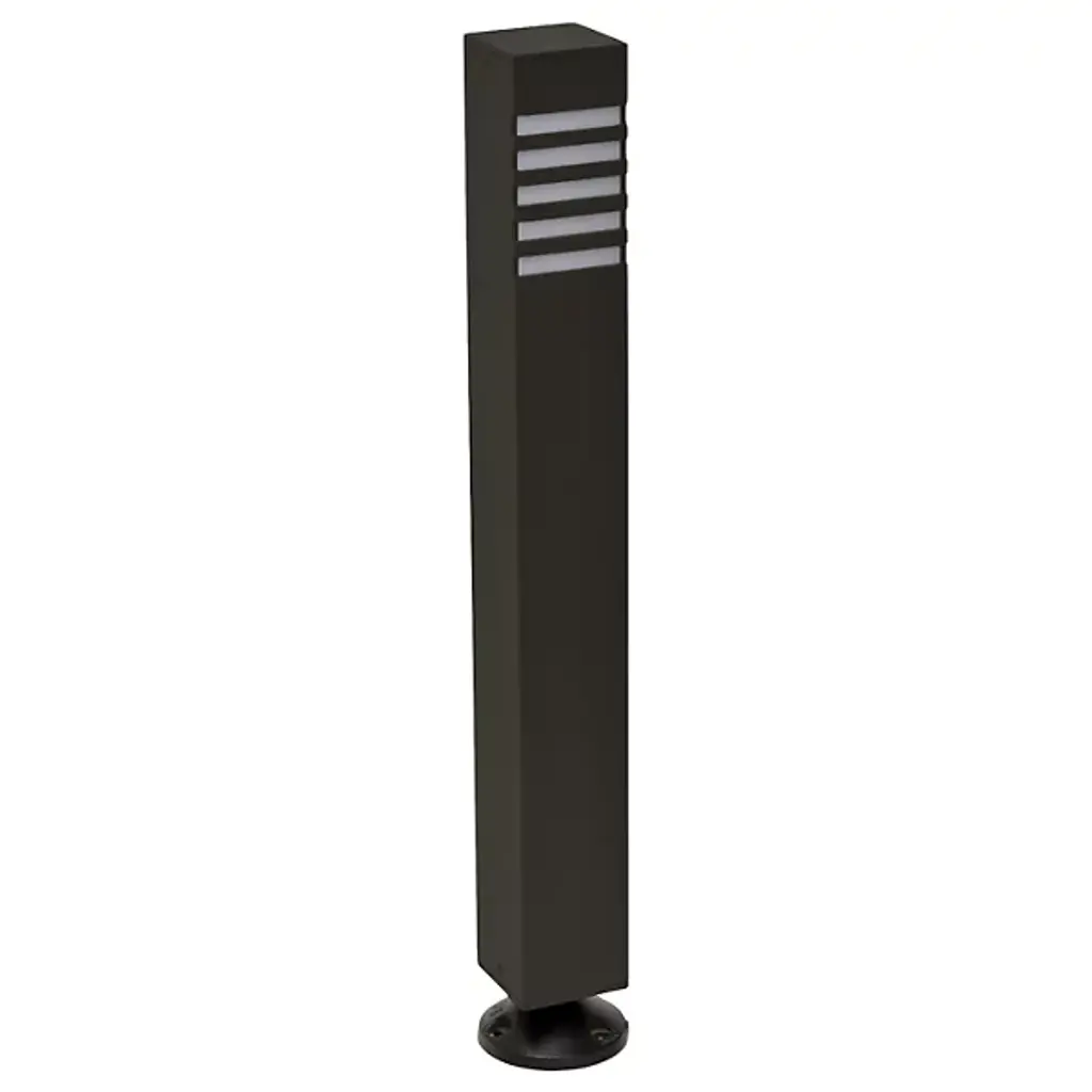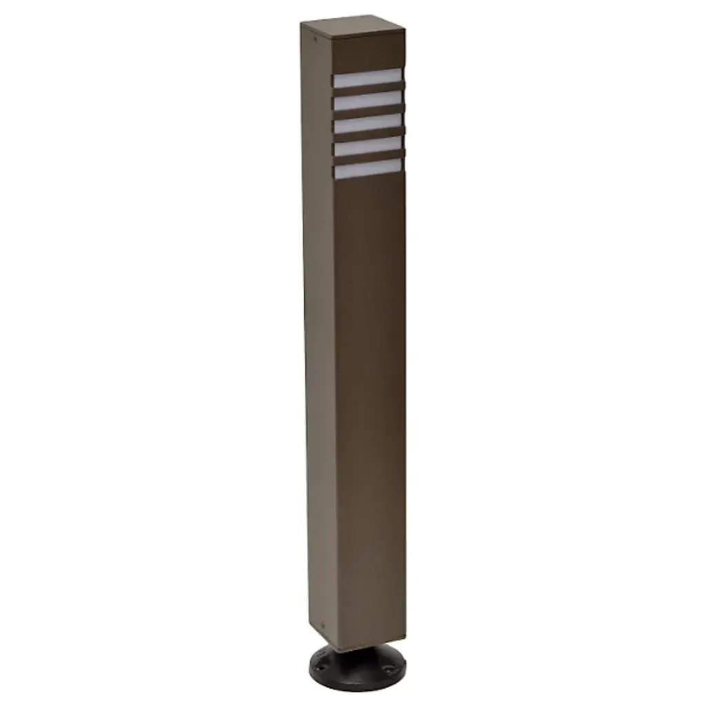The Aluminum LED Square Bollard Path Light by Focus Industries has a charming, rectangular body that houses the latest in energy-efficient, flat panel LED technology. From its 9” ABS stake, the fixture mounts easily into the ground and, thus, has endless placement possibilities on any earth surface. When on, its LED light source emanates from openings at the upper portion of its body, casting a perimeter of light on the surrounding area. Connects to a 12v landscaping electrical system. Transformer is necessary but not included.
