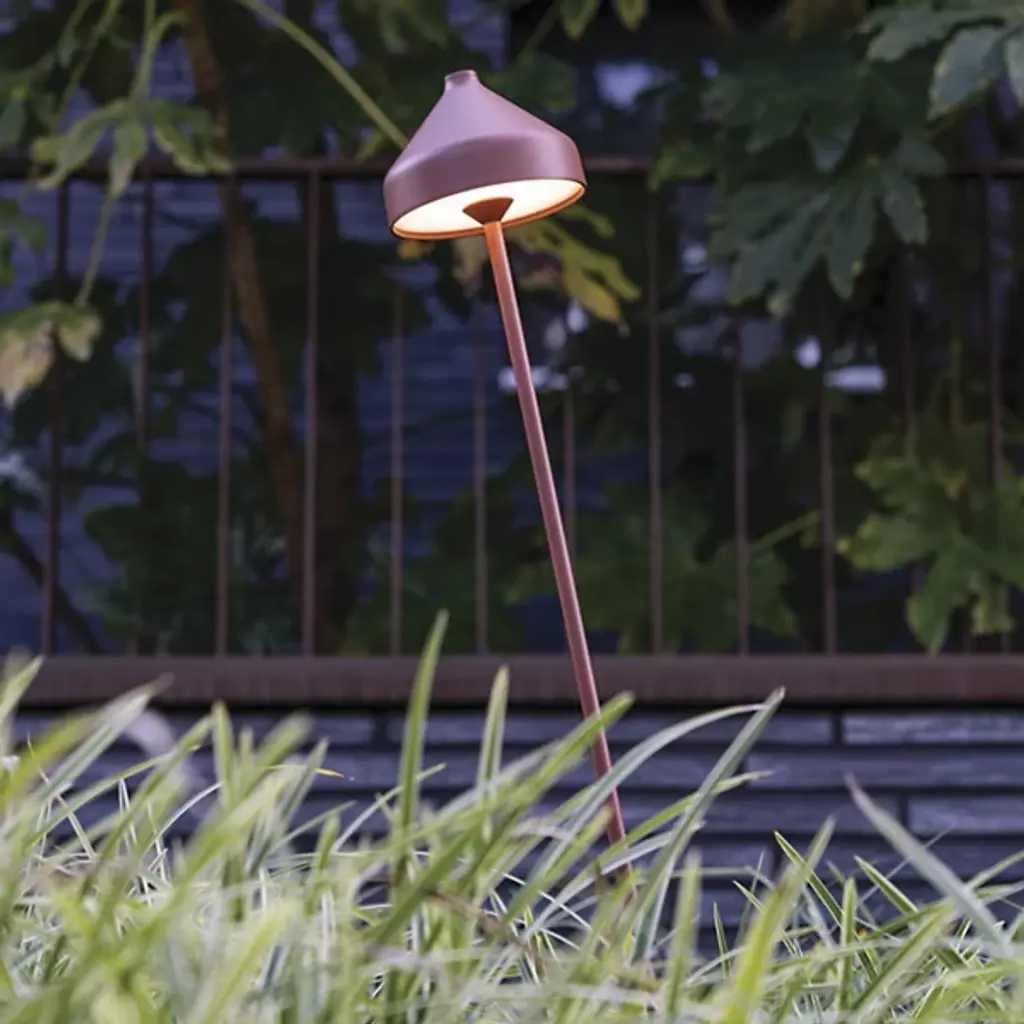 The Amelie LED Outdoor Path Light from Zafferano Americaa is designed by Sara Moroni. It is composed of durable die-cast aluminum. Amelie includes a silicone hook and cap, allowing you to transform it into a suspension lamp. Amelie has a contact charging base that charges the path light in approximately 6 hours. The charging plug is not included, A polycarbonate diffuser shade is illuminated by an integrated LED that is dimmable using the touch dimmer. Your outdoor path light boasts 200 hours of salt spray resistance.