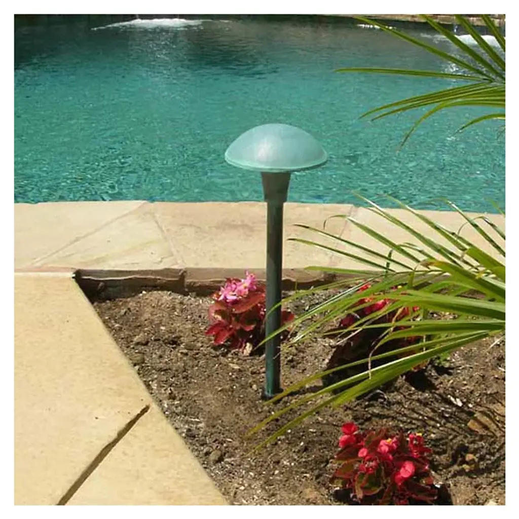 The Brass Mushroom Area Light by Focus Industries features a low-profile, mushroom-shaped hat the guides light downward to illuminate the surrounding area. Its narrow stem has a 9” ABS stake that mounts directly into the ground, allowing you to position the fixture according to your needs. Connects to a 12v landscaping electrical system. Transformer is necessary but not included.