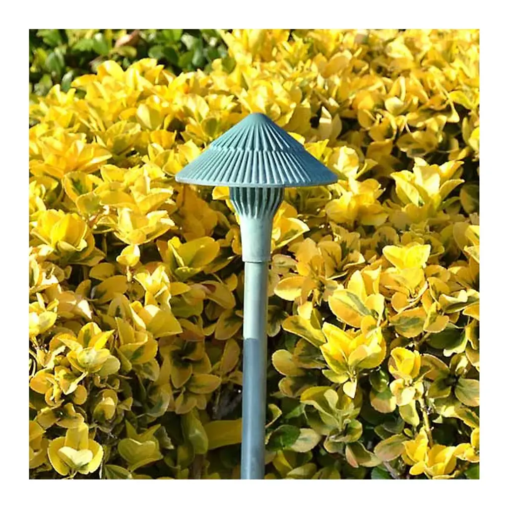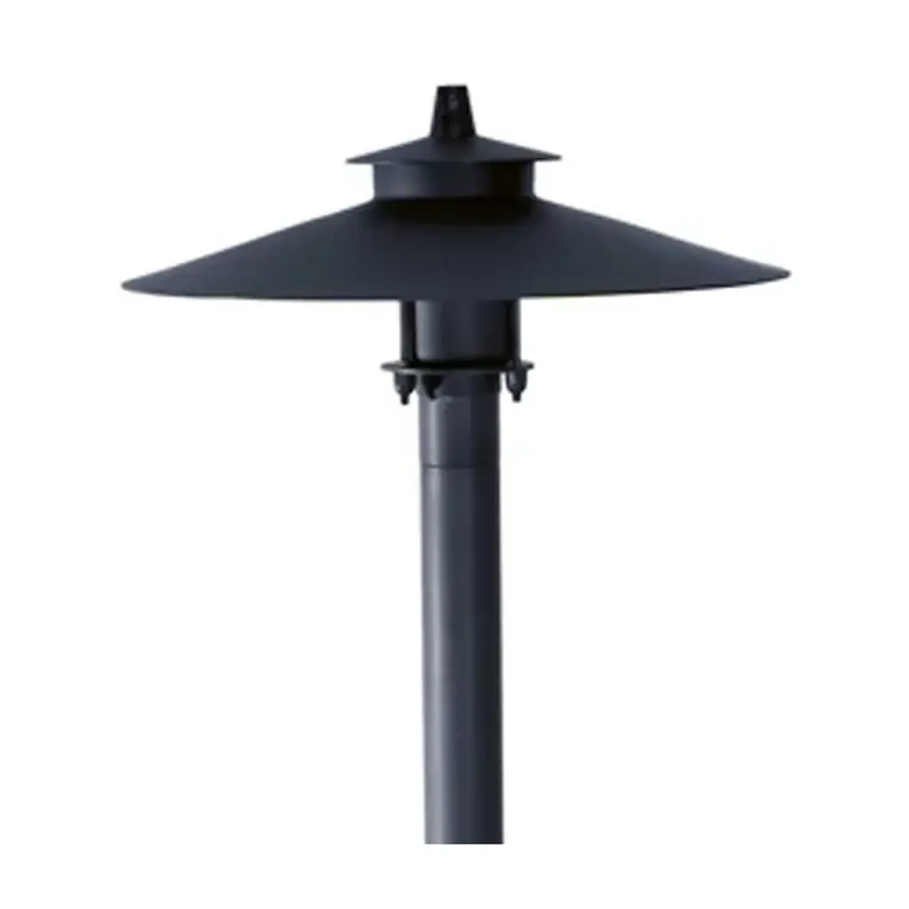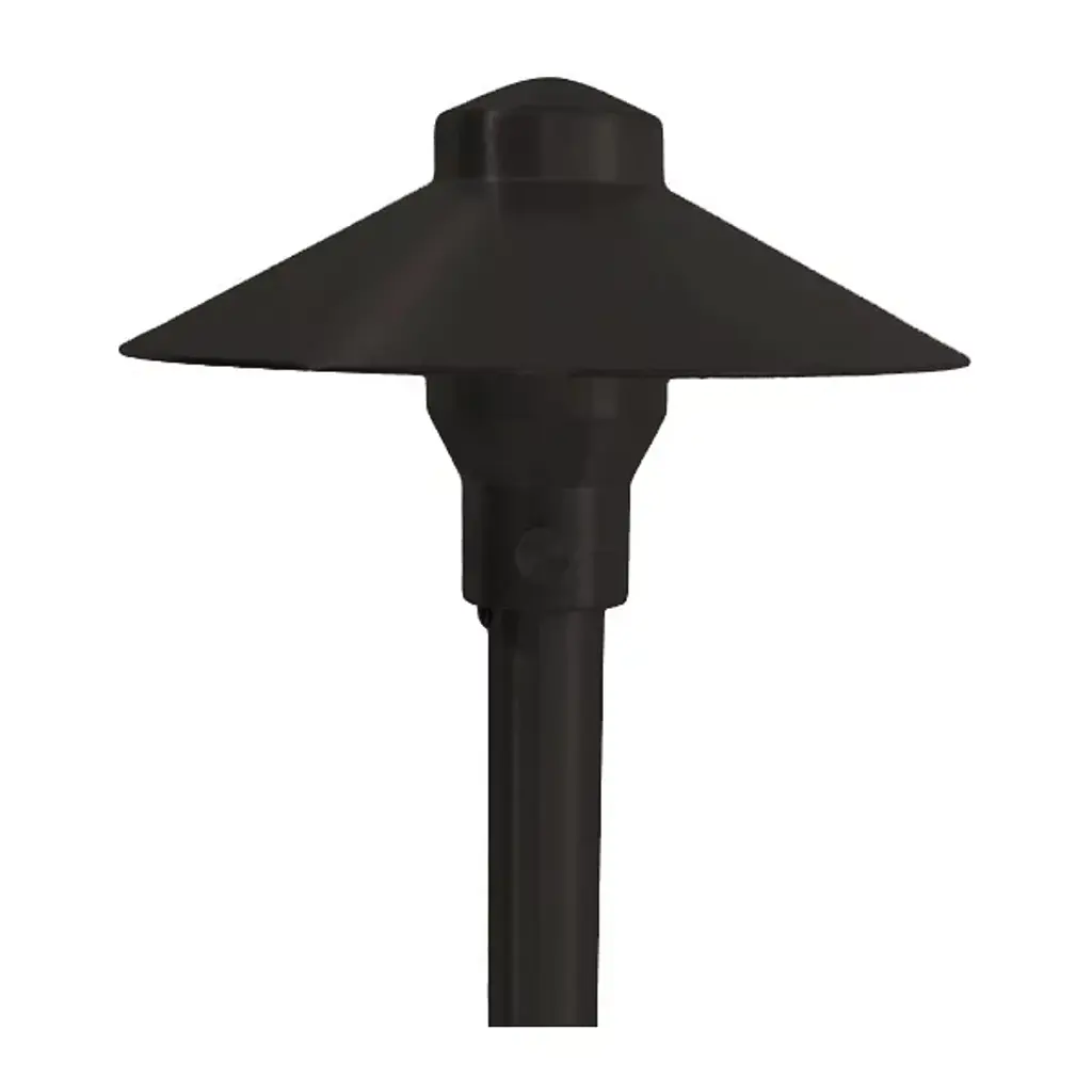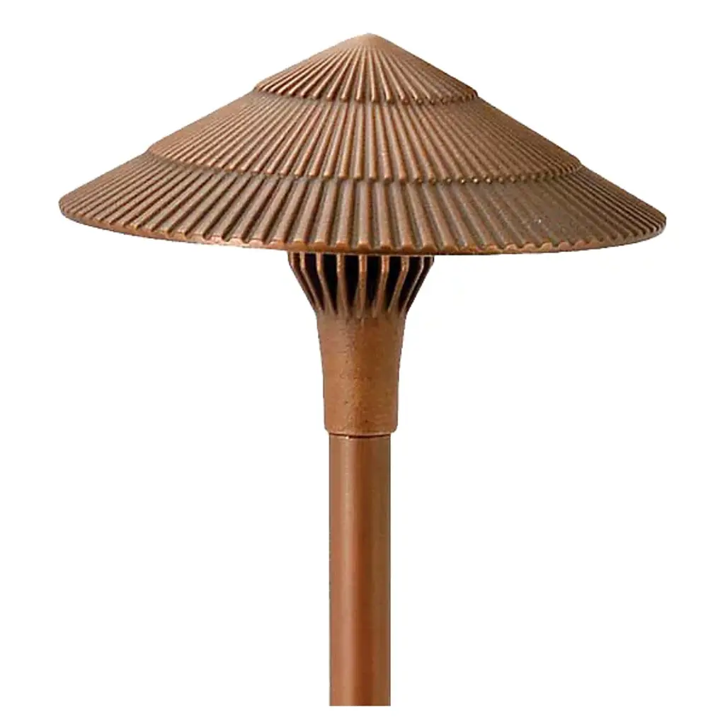 The Brass Panel LED Tiki Area Light by Focus Industries features a 4w LED panel light that is integrated into its heat sink hub. This long-lasting, energy-efficient light source is guided downwards by a textured, multi-layered tiki hat, preventing glare while also illuminating the surrounding area. Beneath the stem is a 9” ABS stake that mounts directly into the ground, allowing you to position the fixture according to your needs. Connects to a 12v landscaping electrical system. For use with magnetic transformers only (available separately).