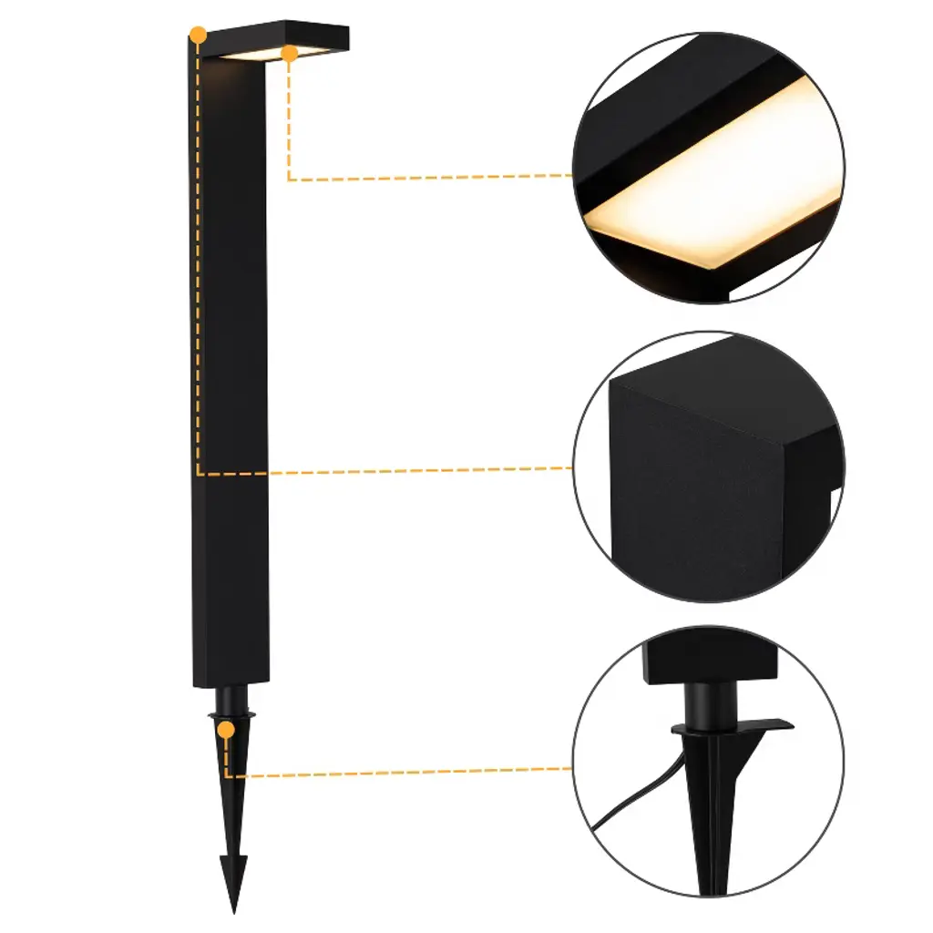 These low-voltage black aluminum LED landscape path lights are a stylish and durable lighting solution for outdoor spaces. Made from robust black aluminum, they feature a modern design that complements various landscaping styles. The lights use energy-efficient LED technology, consuming only 4.5 watts while delivering a bright, warm light with a color temperature of 3000K. Designed for easy installation with a low-voltage system, they are safe and straightforward to set up. The lights are built to withstand various weather conditions, ensuring long-lasting performance and minimal maintenance. Ideal for illuminating pathways and garden features, they enhance safety and add a sophisticated touch to your outdoor environment.