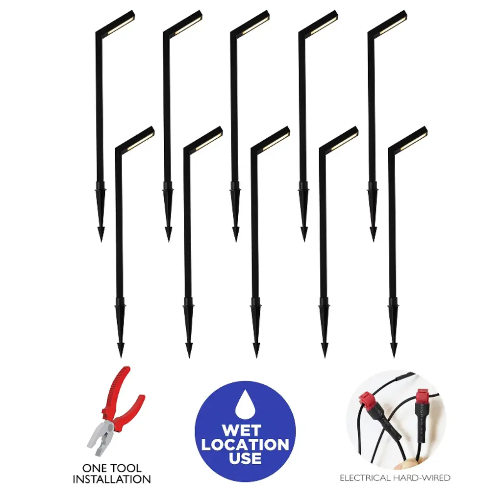 Elevate the ambiance of your outdoor spaces with these sophisticated black aluminum landscape path lights. Crafted from durable aluminum, these lights are designed to withstand the rigors of outdoor conditions, providing long-lasting durability and performance. The sleek black finish adds a contemporary touch to your landscape, seamlessly blending with various outdoor decor styles. Frosted glass shade that not only enhances the aesthetic appeal but also provides a soft, diffused light that creates a warm and inviting atmosphere. The 12V low-voltage system ensures safe and energy-efficient operation, making these lights an ideal choice for homeowners looking to enhance their outdoor spaces without increasing energy consumption.
