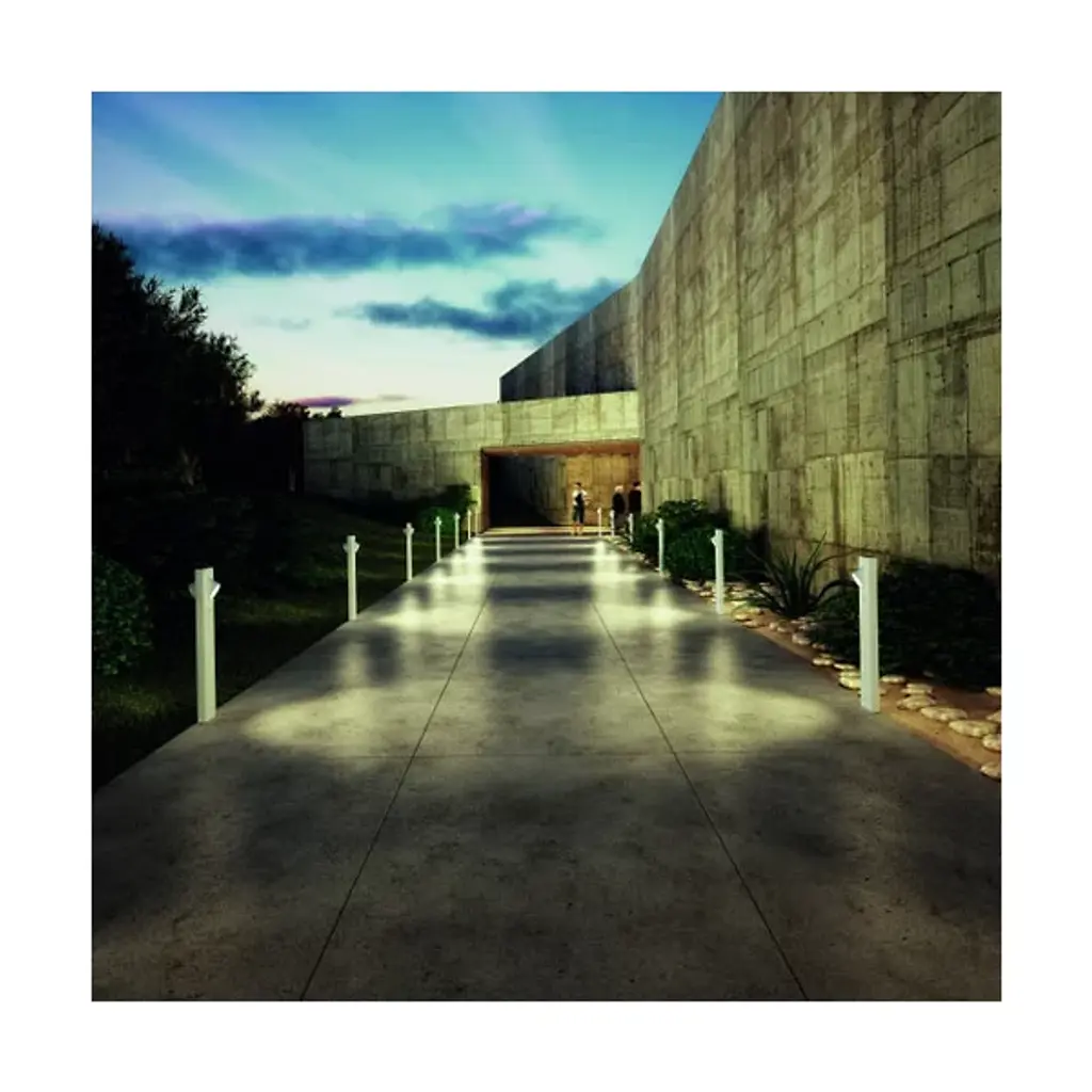 The Ciclope Outdoor LED Path Light puts the focus on modern style. From Artemide, it's a minimalistic design with a durable aluminum body and stem plus a polycarbonate diffuser. The lamp is ideal for driveways and walkways, shining downward for perfect nighttime visibility. An integrated electronic driver maintains its sleek appearance, and the mounting plate has holes for easy installation with lock bolts or dowels.