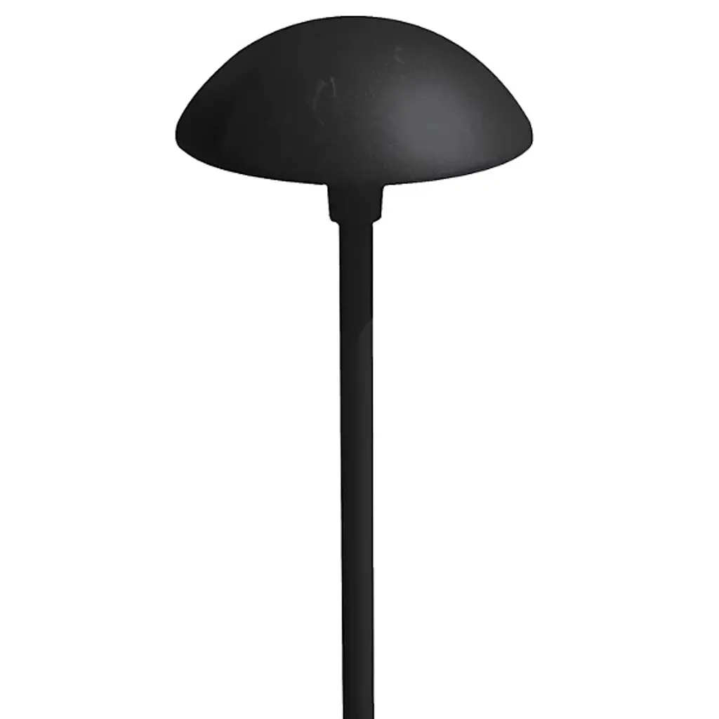 The Eclipse Path Light from Kichler presents its light through the frame of a wondrous circular form, translating the beautiful silhouette of the moon and light of the sun into a sharp minimalist construction. Subtle creases from the column emphasize the importance of form as well as functionality. A domed hood hovers over the piece, taking its light and fanning it down in a circular fashion onto its surface and its sleek metal construction.