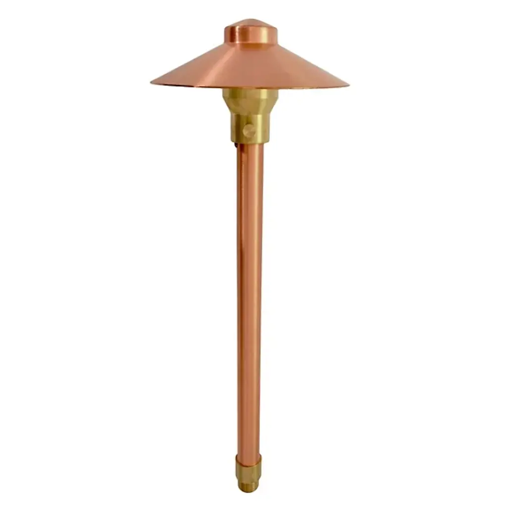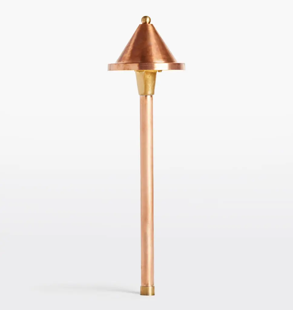 The Fundamentals LED Path Light by Kichler is a beautiful way to bring a practical layer of illumination to walkways, gardens, and more. Made with heavy gauge copper, the simple, uncomplicated design of this path light allows it to be at home in a wide range of locations as a single stem supports a flared shade with a rounded top. Highlight areas that need some lighting at night with a lovely mix of form and function with this sleek design.