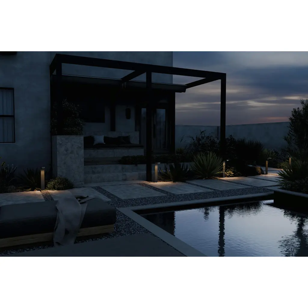 Illuminate outdoor spaces with the 12 Volt LED 22.5" curved path light in Textured Black. Its 3000K integrated LED light source delivers a pure white light to sidewalks, stone pathways and walkways. Crafted to withstand the elements, the curved path light's electrical components are fully sealed under a polycarbonate lens. Its streamlined design features a graceful curve that contrasts beautifully with right angles seen in many clean, modern designs.