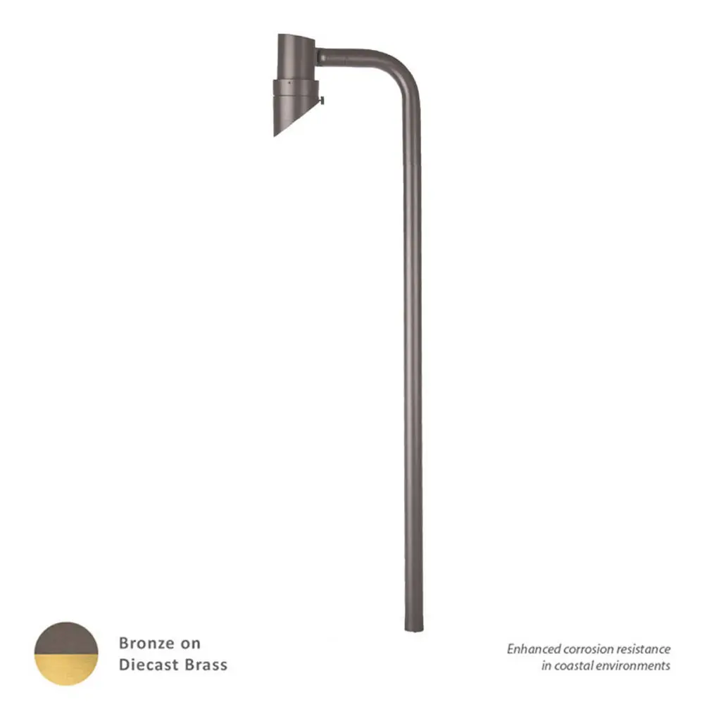 Simple, clean and efficient. The Miniature Accent Path Light features a convenient control of your landscape lighting. A solid die cast adjustable stem contains LED miniature accent lights with integral dimming and beam angle control. The accent light is fully rotatable to illuminate a 280 degree area of your choice. Path light includes three stems of 24", 12", and 6" for a maximum height of 48". This path light is powered by bright long lasting integrated LED's and can conveniently tap into any existing 12V landscape lighting system. Factory sealed and water tight with an IP66 rating for protection against high-pressure water jets and outdoor elements. Casted using a special k-alloy aluminum that is engineered to withstand the most challenging environments over time. Solid brass coated in bronze (-BBR finish) may be available for enhanced protection against corrosive elements and is recommended for use in coastal or marine environments. Includes a 9in mounting spike (Guardian Spike sku 9000-SP9-BZ sold separately for more durable mounting) and a 3ft lead wire with two gel filled direct burial wire nuts. A magnetic or electronic power supply is required (sold separately) for 12V fixtures. A variety of accessories are sold separately for additional mounting options.