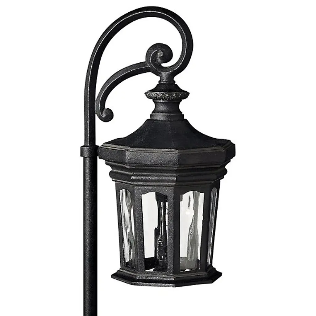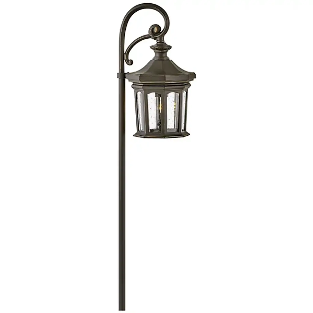 The classical lantern design reimagined as a permanent guiding presence for the elegant home. Welcoming in its familiarity, the Raley LED Path Light from Hinkley serves walkways and driveways as a warmth-filed beacon. Made from cast aluminum, the piece offers durability in the outdoors, like its time-honored inspiration. There’s no mistaking the bold flared shapes and series of facets of this aluminum construction. It seduces with a series of clear seeded glass windows that surge with texture. The glass and the aluminum protect the lone bulb inside while enhancing its lonely charm. When turned on, the bulb produces a classic warmth, seen as exquisite highlights through the seeded glass details.