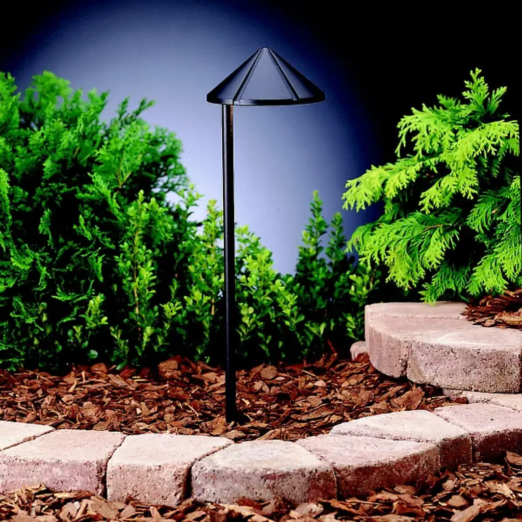 A gorgeously low-key piece of outdoor path lighting that offers tasteful style from all sides. The Side Mount LED Path Light by Kichler is the perfect piece for adding safety, ruggedness, and elegance to your paths or walkways. Made of Die Cast Aluminum, this subtle piece features a cone-shaped shade with linear grooves etched into it for a cool texture. The in-ground stake provides stable support, and the downward-facing light brilliantly and powerfully accents its surroundings.