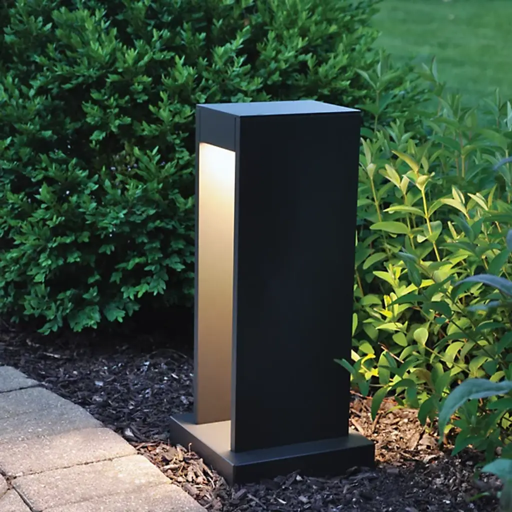 Clean lines, clever profile. The Syntra Path Landscape Light by Visual Comfort Modern, formerly known as Tech Lighting, flaunts a slim, open rectangular structure that is set on a square base to infuse a modern, minimal look. Crafted from die-cast aluminum, it showcases a powder coat finish that makes this fixture immune to weather elements. It features an impact-resistant and UV stabilized lensing and a built-in and dimmable LED light source at the top interior to deliver consistent, down lighting. This landscape light brightens both commercial and residential outdoor spaces like pathways or gardens.
