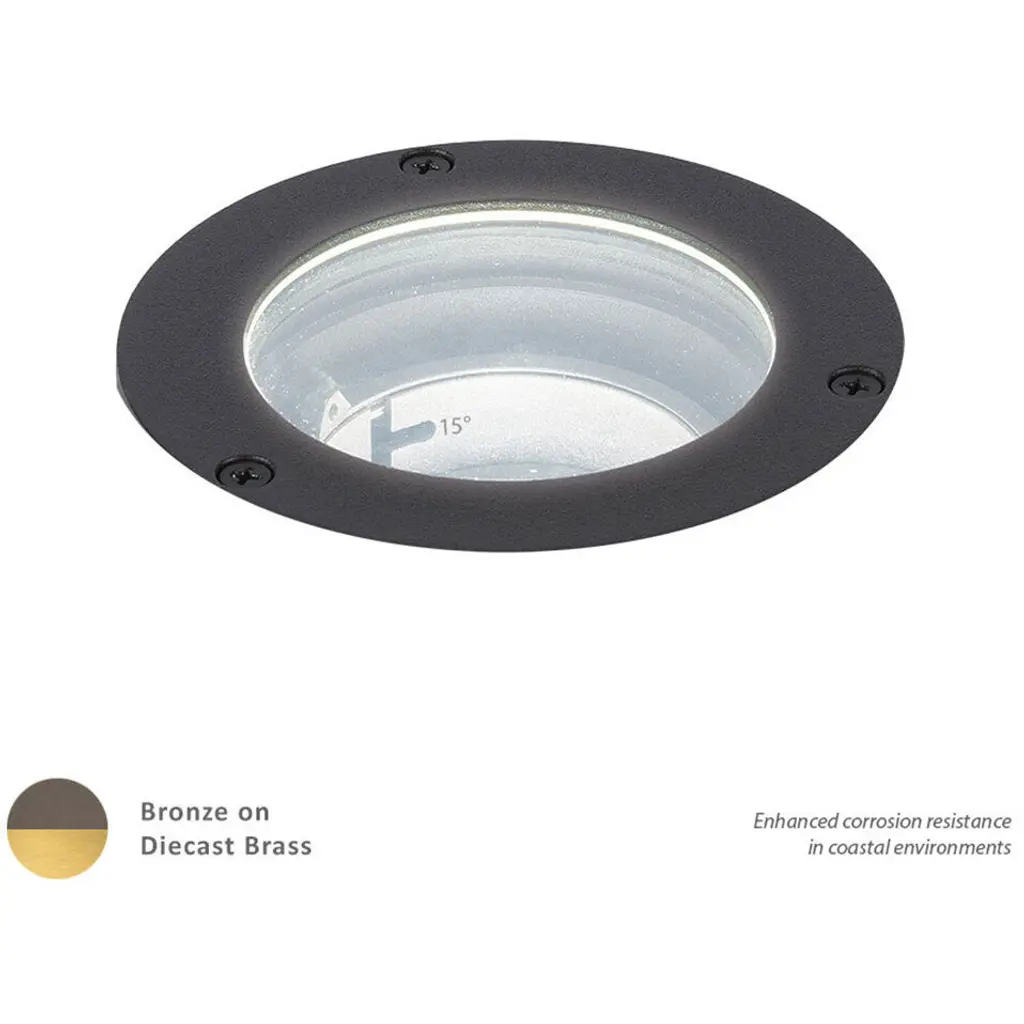 Function meets durability with this LED 3in inground light available in 12V or 120V and 2700K or 3000K color temperatures. A twist of the light engine inside of the housing at indexed intervals allows fixed beam angle adjustment from flood to spot while a mechanical dial at the base of the light engine provides smooth integral brightness control. The light engine can be tilted in two 10 degree intervals and rotated to cast light in any direction. One sku fits most applications, eliminating the need to choose from dozens of light bulbs with varying light outputs when compared with traditional landscape lights. This well light has a removeable cover that is gasketed to create a water tight seal with IP66 rating for protection against high-pressure water jets and outdoor elements. Includes a 3ft lead wire with two gel filled direct burial wire nuts. Casted using a special k-alloy aluminum that is engineered to withstand the most challenging environments. Solid brass coated in bronze (-BBR finish) is available for enhanced protection against corrosive elements and is recommended for use in coastal or marine environments. A magnetic or electronic power supply is required (sold separately) for 12V fixtures. A variety of accessories are sold separately for additional mounting and glare control options.