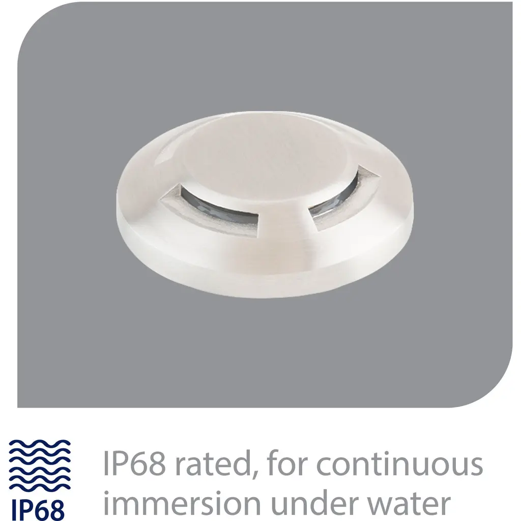 LED Landscape surface mounted indicator lights are ideal for ease of installation. This indicator light is perfect for indoor and outdoor applications in wells and ponds, pools, deck and patios, and ceiling or walls. Factory sealed and water tight with an IP68 rating for protection against submersion up to 5 meters under water and outdoor elements. Casted with 316 marine grade stainless steel in a polished stainless steel or bronze coated finish. Stainless Steel provides enhanced protection against corrosive elements and is recommended for use in coastal and marine grade environments. Each indicator light includes 3ft of low voltage burial cable and direct burial gel filled wire nuts. Magnetic or Electronic Power supply is required.