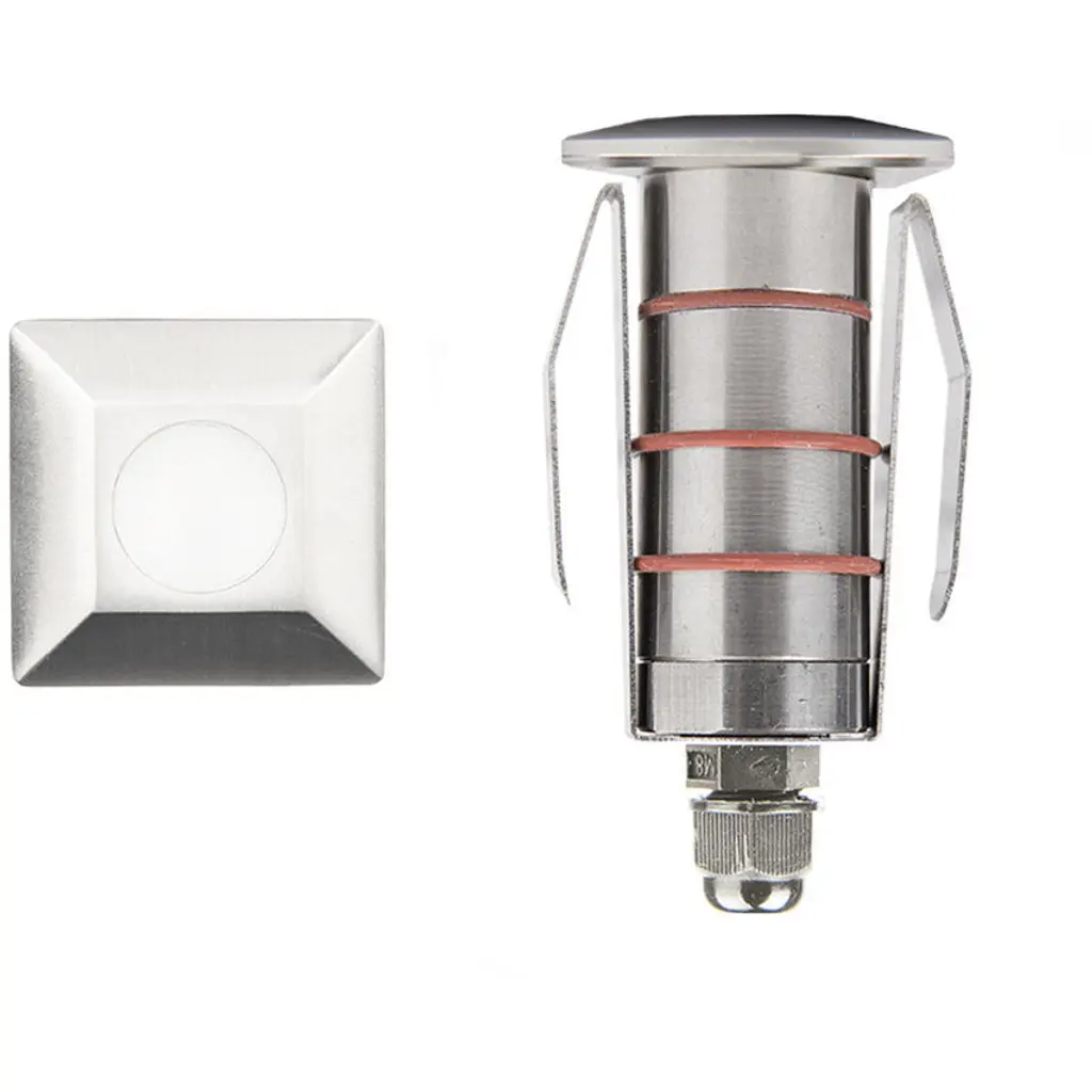LED Landscape inground indicator lights are ideal for soft or concrete ground applications and available in 1 or 2 inch sizes with a variety of interchangeable screw-on face plates. This indicator light is perfect for indoor and outdoor applications in wells and ponds, pools, deck and patios, and ceiling or walls. Factory sealed and water tight with an IP68 rating for protection against submersion up to 5 meters under water and outdoor elements. Casted with 316 marine grade stainless steel in a polished stainless steel or bronze coated finish. Stainless Steel provides enhanced protection against corrosive elements and is recommended for use in coastal and marine grade environments. Each indicator light includes 3ft of low voltage burial cable, direct burial gel filled wire nuts, and an optional spring retention clip. Magnetic or Electronic Power supply is required. Concrete pour kits are available for concrete installation options.