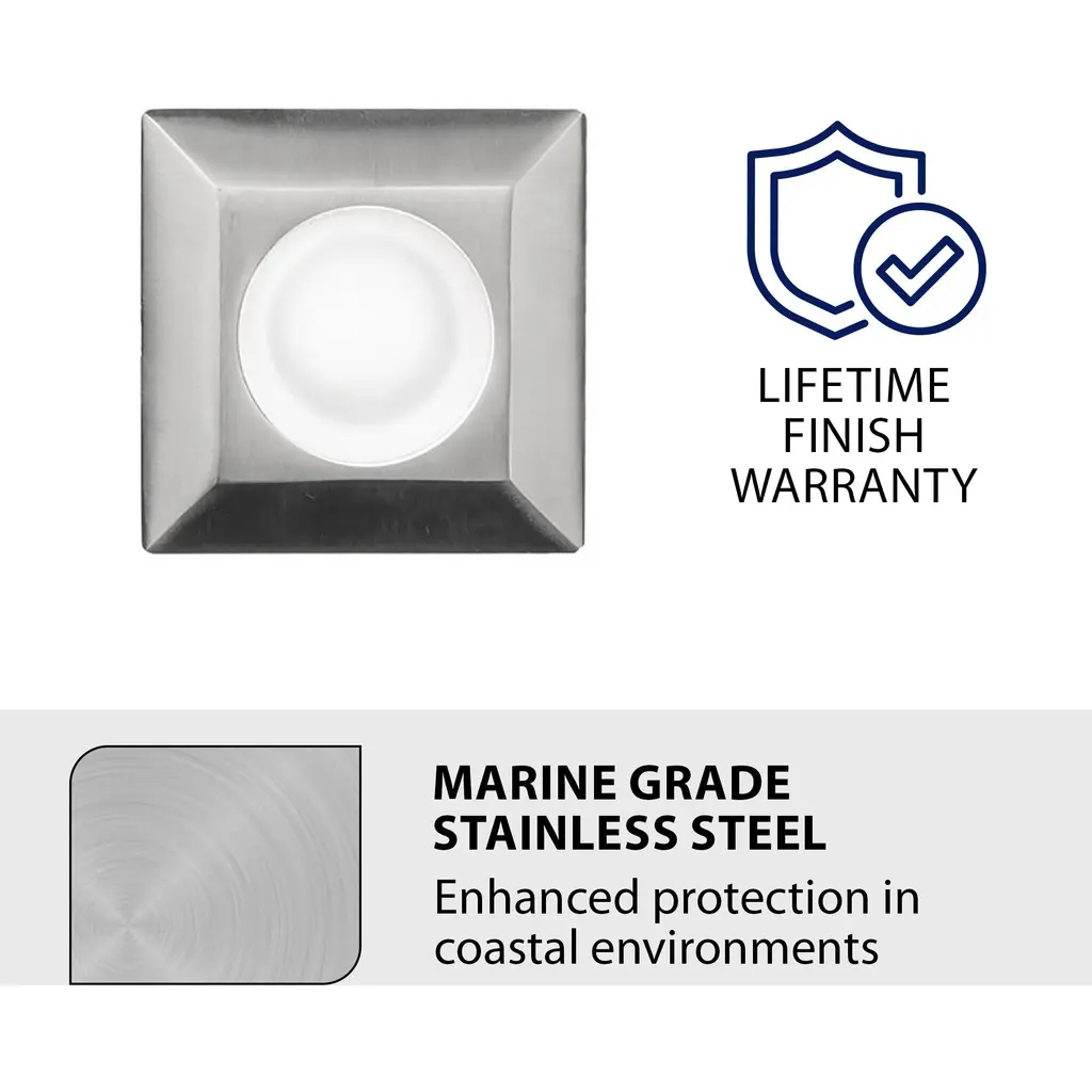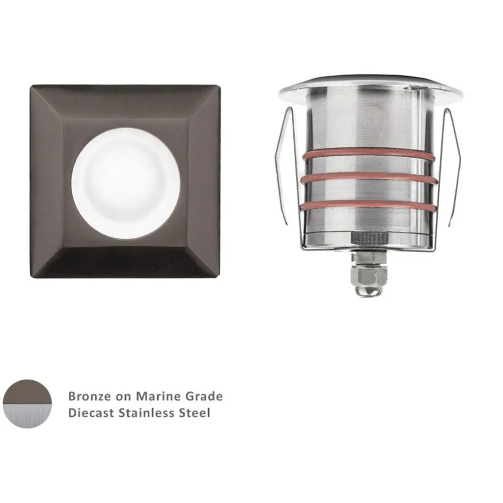 LED Landscape inground indicator lights are ideal for soft or concrete ground applications and available in 1 or 2 inch sizes with a variety of interchangeable screw-on face plates. This indicator light is perfect for indoor and outdoor applications in wells and ponds, pools, deck and patios, and ceiling or walls. Factory sealed and water tight with an IP68 rating for protection against submersion up to 5 meters under water and outdoor elements. Casted with 316 marine grade stainless steel in a polished stainless steel or bronze coated finish. Stainless Steel provides enhanced protection against corrosive elements and is recommended for use in coastal and marine grade environments. Each indicator light includes 3ft of low voltage burial cable, direct burial gel filled wire nuts, and an optional spring retention clip. Magnetic or Electronic Power supply is required. Concrete pour kits are available for concrete installation options.