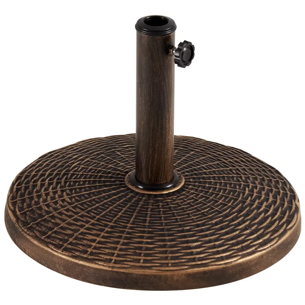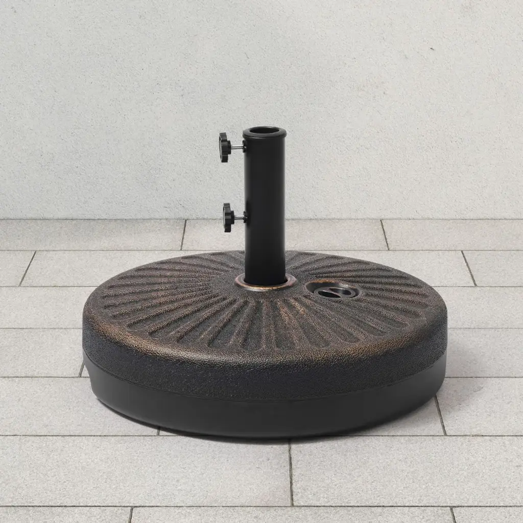 20" Fillable Round Umbrella Base Stand Heavy Duty With Adjustable Knob And Pole Holder, Bronze