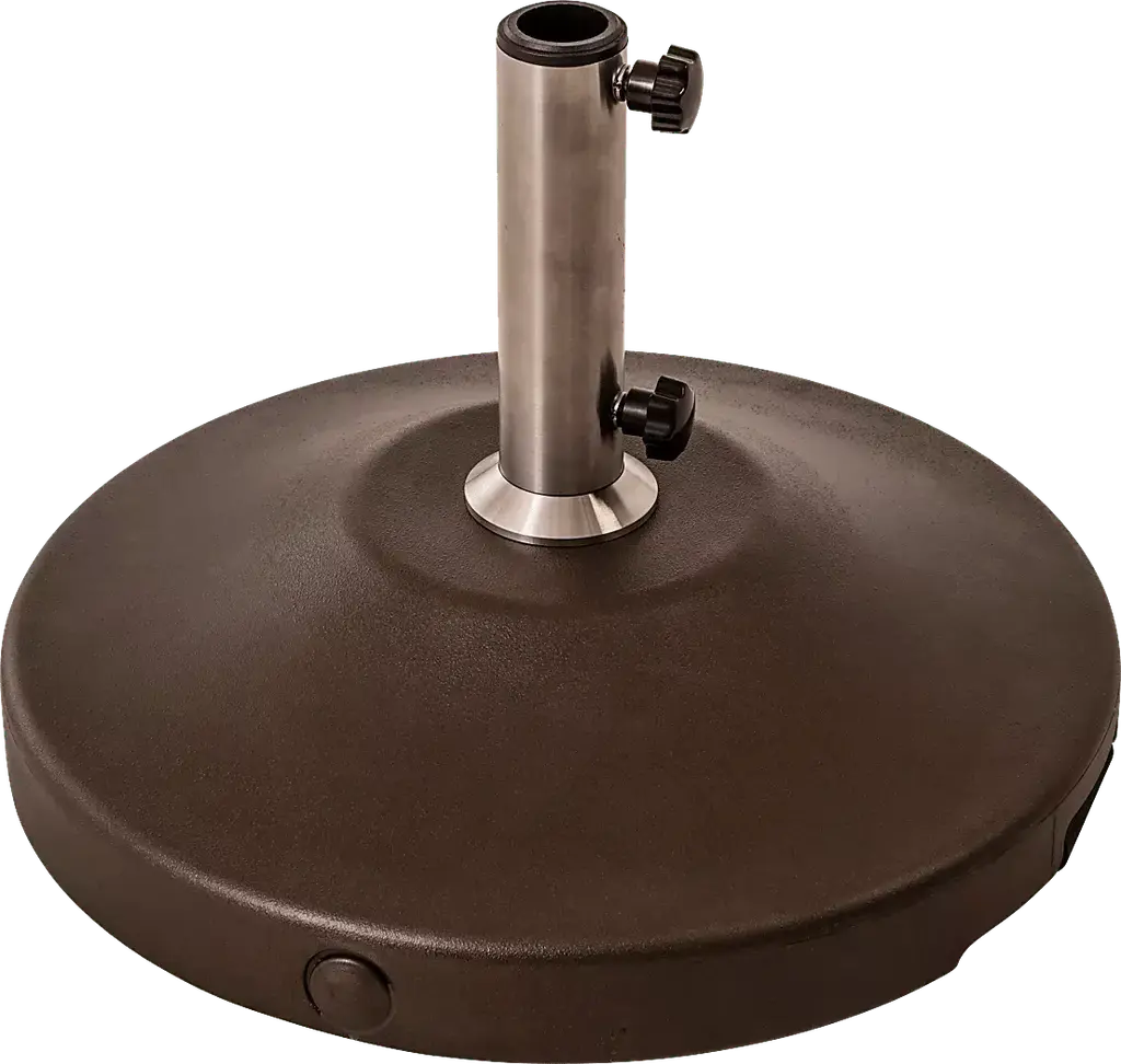 Every umbrella requires a base to keep it upright and keep the wind from blowing it away. Made of weather- and UV-resistant HDPE material this base is perfect for the outdoors. suitable for 1.5- to 2-inch poles with helpful knobs to tighten for a more secure fit on the pole. Simple to fill with water or sand and ensure that you have the perfect base this season for your umbrella.While we strive to accurately represent product colors, please be aware that actual colors may vary slightly due to individual screen settings and lighting conditions. FeaturesAdjustable knobs for a secure fit on umbrellaCompatible with 1.5" to 2" poles or most standard umbrella polesMade with durable HDPE materialsWeather and UV resistant materialFillable with water or sand Details:Product Type: Patio Umbrella Bases & BracesWhat's Included: (1) Umbrella BaseUmbrellaUmbrella BaseDimensions: 20" W x 20" D x 13" HWeight: 4.5 lbs.