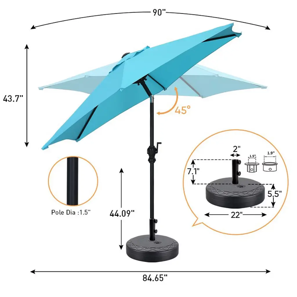 Ainfox 7.5ft Patio Umbrella Blue With Round Umbrella Base