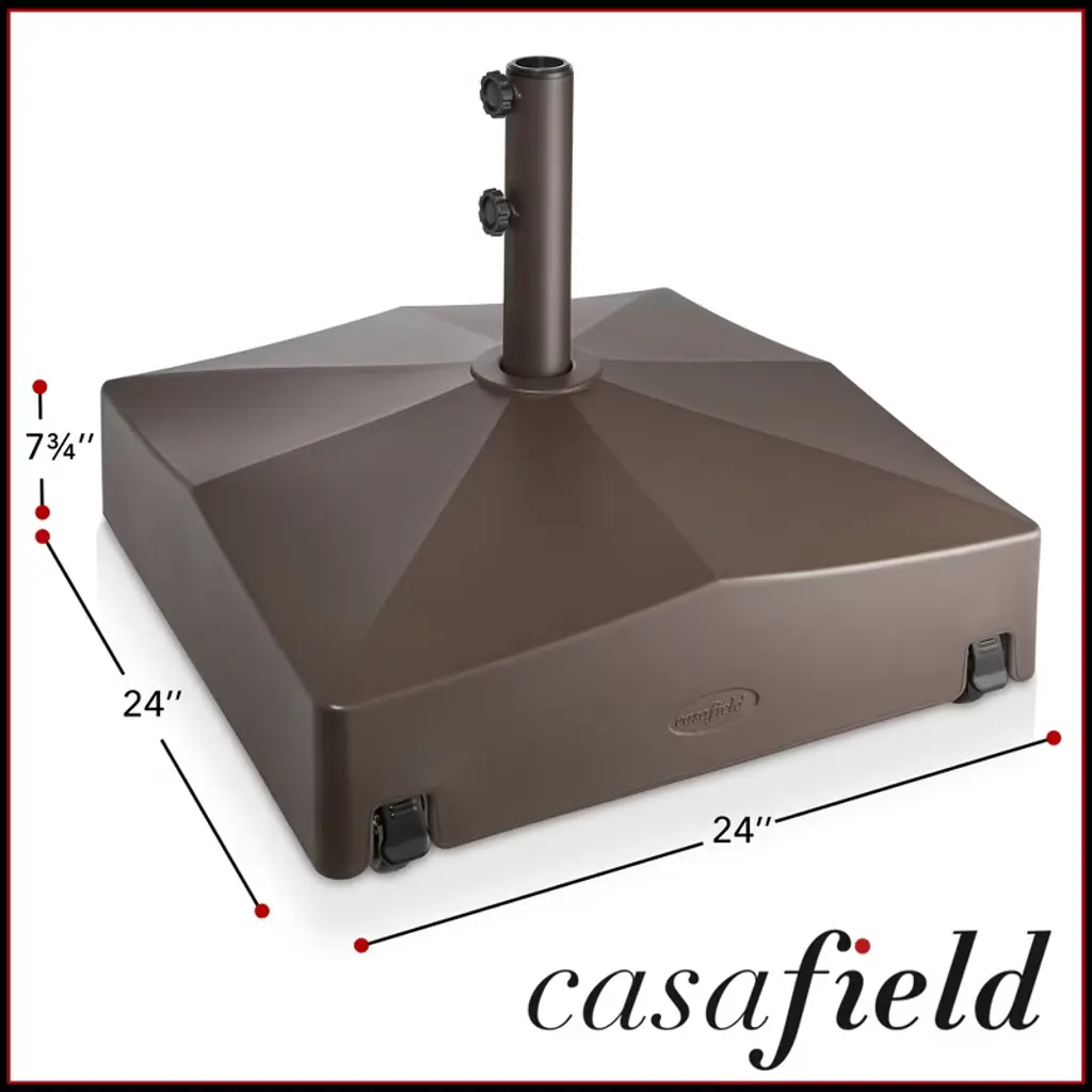 Casafield Patio Umbrella Base With Wheels, 131lb Fillable Umbrella Stand, 24" - Brown