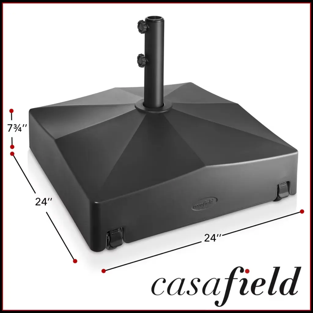 Casafield Patio Umbrella Base With Wheels, 131lb Fillable Umbrella Stand, 24" - Black