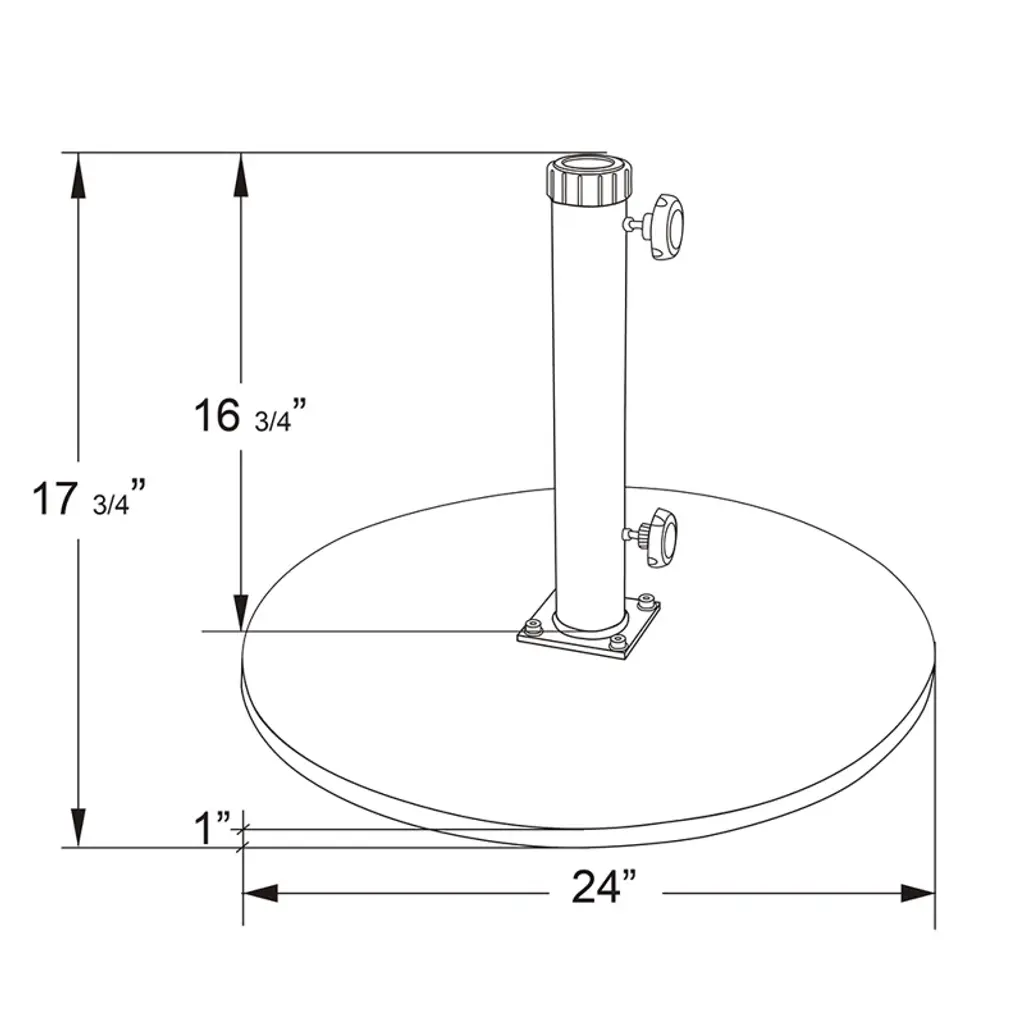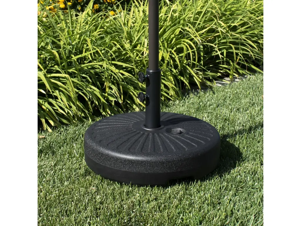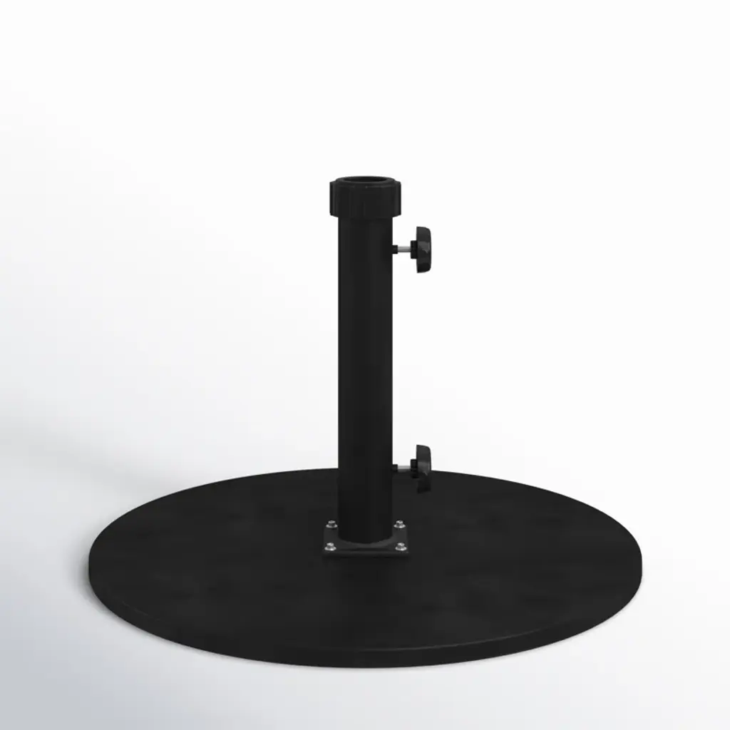 Ensure your umbrella has a spot to rest with this freestanding, universal umbrella base, perfect for residential or non-residential use. Crafted from cast iron, its 95 lb. weight offers a solid foundation that ensures your umbrella will stay in place. It also features a removable pole neck to accommodate a variety of umbrellas. Plus, although not waterproof, it is resistant to weather, rust, stains, and mildew! Best of all, it features adjustable tightening knobs to provide support for most umbrellas.