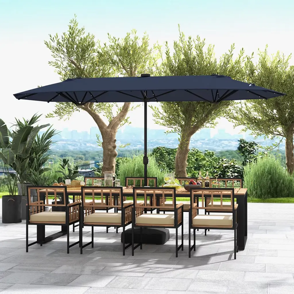 Costway 13ft Double-sided Patio Umbrella With Solar Lights Crank Handle Umbrella Base Navy