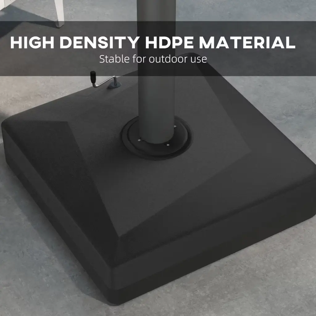 Gulches 330 lbs. fillable cantilever umbrella base, designed for Outsunny 84D-110V02 models, holds 264 lbs. (water) or 330 lbs. (sand). Features lift wheel for easy movement/locking, adjustable foot pads for stability on uneven surfaces. All-weather HDPE resists water, sun, chipping, peeling. Cross-base secures umbrellas; fits patio furniture without umbrella holes. Confirm fit for your model.
