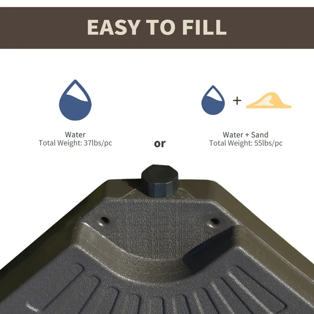Gulches 4-piece Fan Shaped Cantilever Patio Umbrella Base With Handles - Coffee, 148 Lbs Water/220 Lbs Water & Sand Capacity