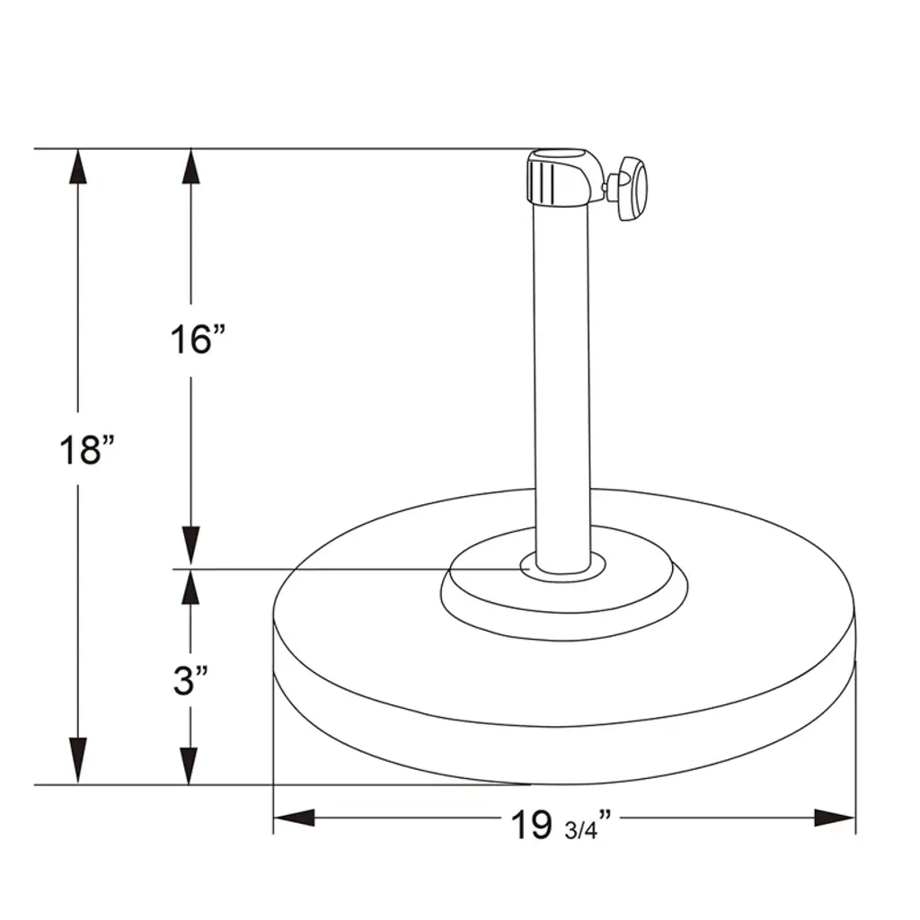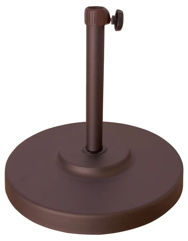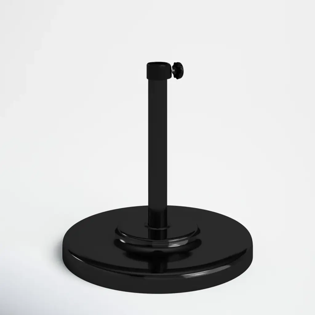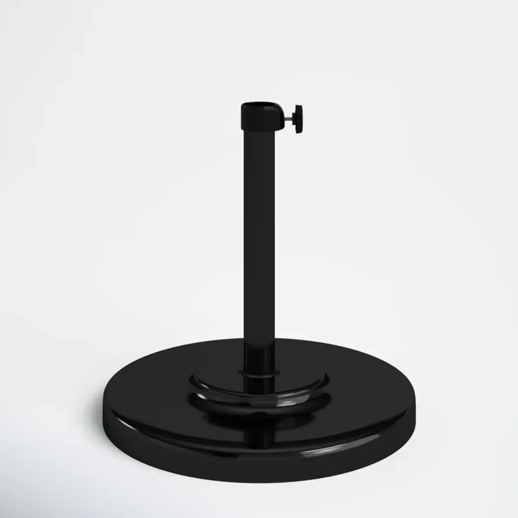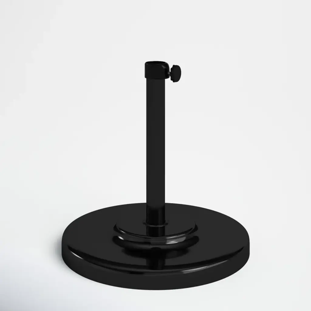 There's nothing worse than having to chase after an umbrella on a windy day, so keep your shade in place with a piece like this! Crafted from sheet metal with a powder-coated finish, this weather-resistant piece is perfect for setting a solid foundation for your umbrella, thanks to its cement filling. And thanks to its streamlined circular silhouette, this piece can be easily added to various outdoor ensembles. Designed to fit umbrella poles up to 1.75” in diameter, the straight base tube holds up to 16” of the pole and includes a tightening knob.