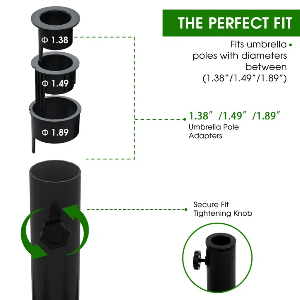Say goodbye to flyaway umbrellas with this sturdy steel base. Designed to resist rust, UV rays, and weather, this base will keep your outdoor space looking fresh. It's adjustable to fit a 2.3'' pole size and features a removable pole neck, catering to different umbrella styles. From tranquil backyards to bustling cafes, this base secures your shade in style. Plus, it's a breeze to set up, so you'll be lounging in the shade in no time.