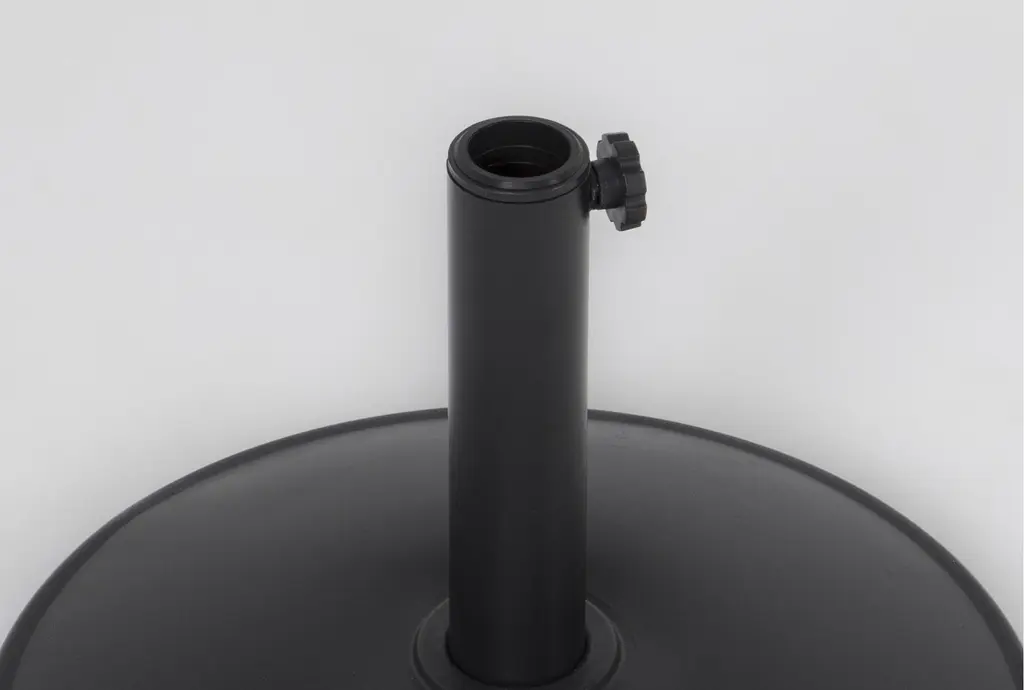 The sturdy, stable base is meant to be paired with our many Market Umbrellas. Place your umbrella pole into the base to get the right height.