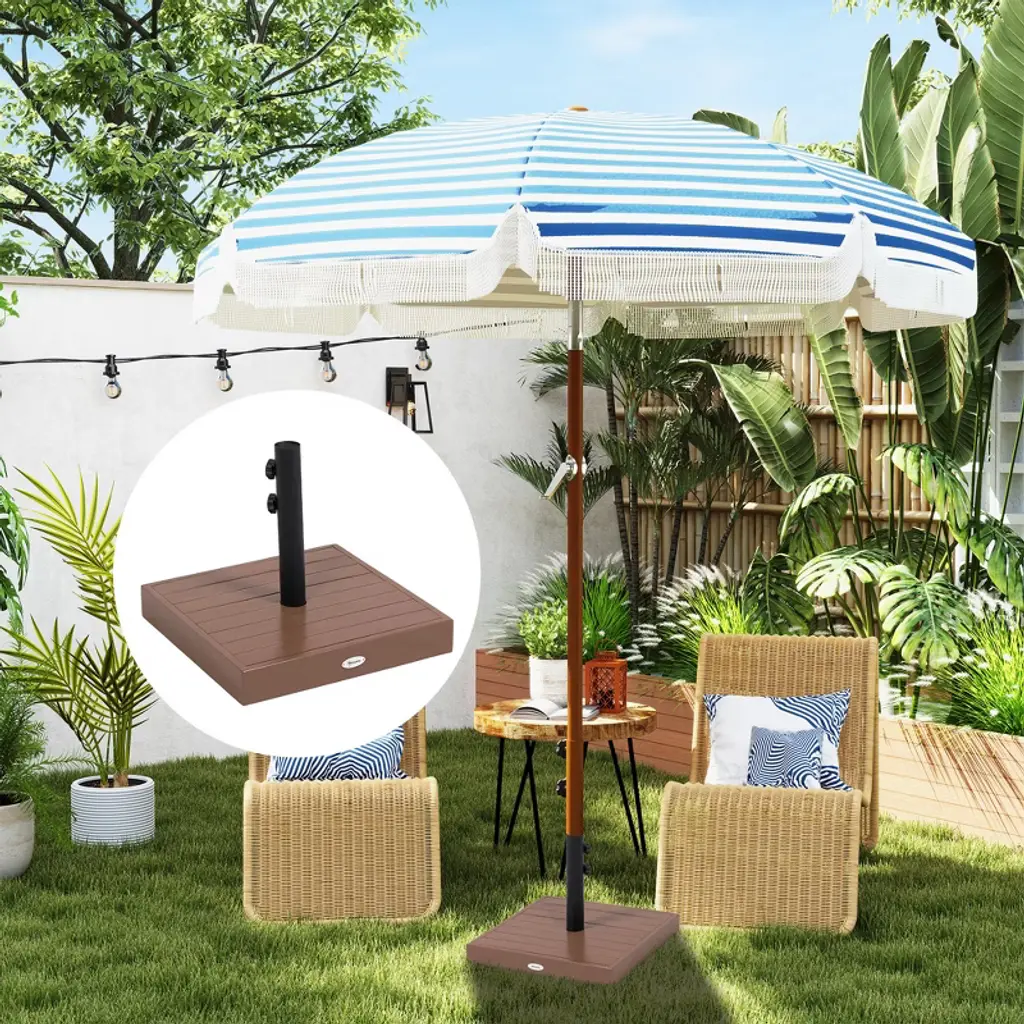 Enjoy your outdoor backyard lifestyle with the Outsunny patio umbrella holder to keep your outdoor sun umbrella in place. Our weighted umbrella base firmly secures your umbrella or parasol to provide you with the shade you need. Designed with a rustic slated acacia wood exterior, the patio umbrella base makes for an attractive addition to any garden or patio area. Get comfy outside with the Outsunny patio umbrella stand to help you set up your relaxing backyard oasis.