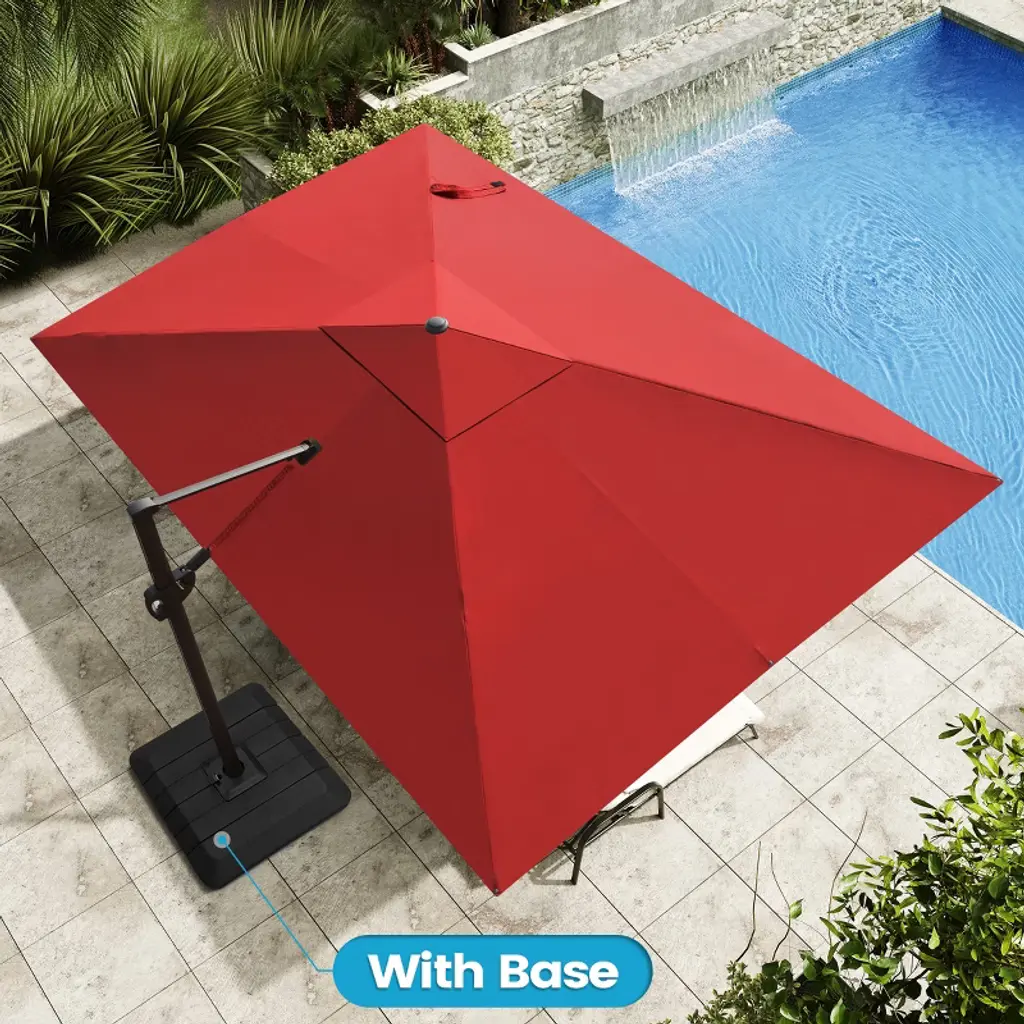 Material: HDPE and Steel, Product size: 20.0 inches x 4.7 inches (Diameter x Height) Adjustable knob: Tighten the adjustable knob on the steel pipe to ensure the best strength and stability regardless of the size of the umbrella pole. Controlling water spray: The umbrella stand can be filled with water at will according to your needs. Maximum water filling capacity: 22KGS/48.50LBS Suit for holding most 6-10' umbrellas with 1.5-1.9" pole