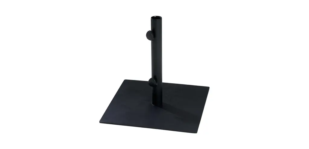 Our Slim Profile 35-lb. Umbrella Base features a scratch-resistant powder-coated black finish for added durability. This base is to be used with a dining table and can accommodate an umbrella up to 9-ft. in diameter.100% steel base with powder-coated finishUse with outdoor umbrellas 7-1/2' to 9' in diameterAccepts umbrella poles up to 1-1/2" dia. Designed to accommodate low-structure tablesAlways close umbrella when not in use, or in inclement weatherNote: This base cannot be used to display a freestanding umbrella. At Frontgate, our primary focus is quality. We guarantee that every product we sell will stand up to the supreme test – our customers' satisfaction. To learn more about our policies, visit our Shipping & Processing, Returns & Exchanges and Warranty & Price Guarantee pages.
