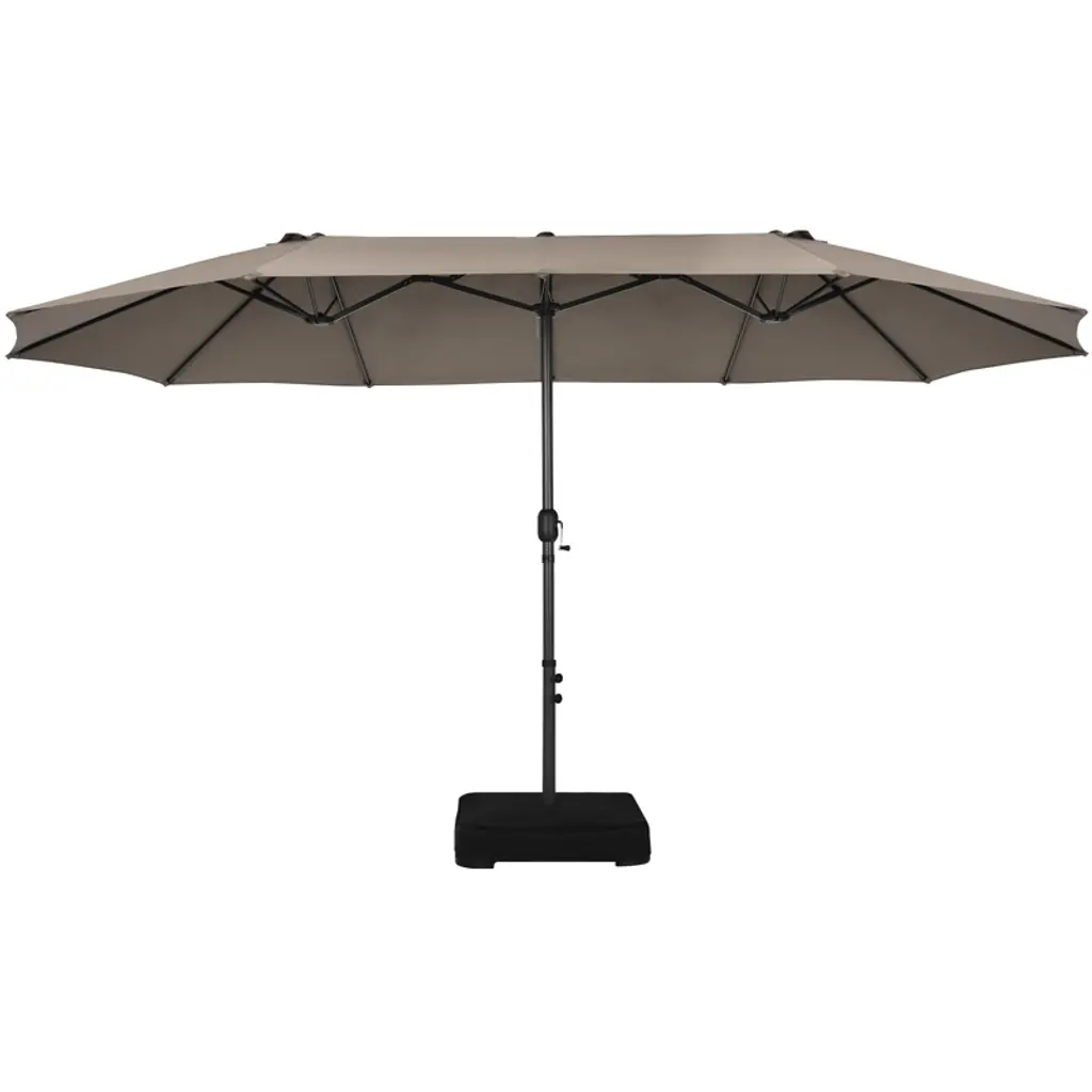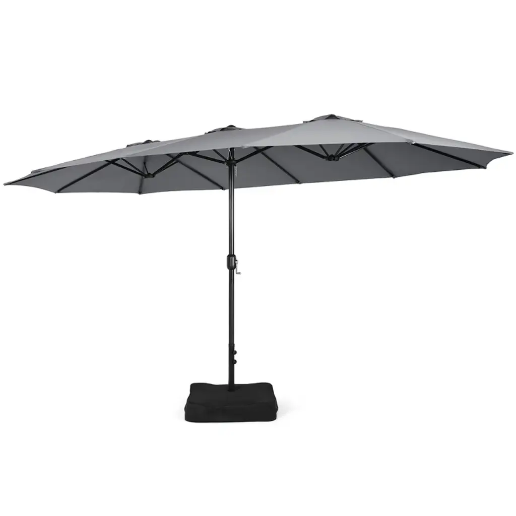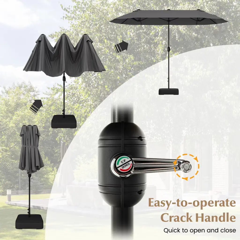 Tangkula 13ft Double-sided Patio Umbrella W/ Crank Handle Umbrella Base Safety Lock Grey