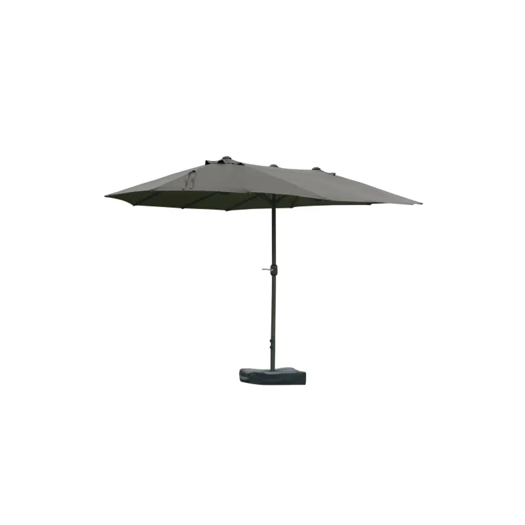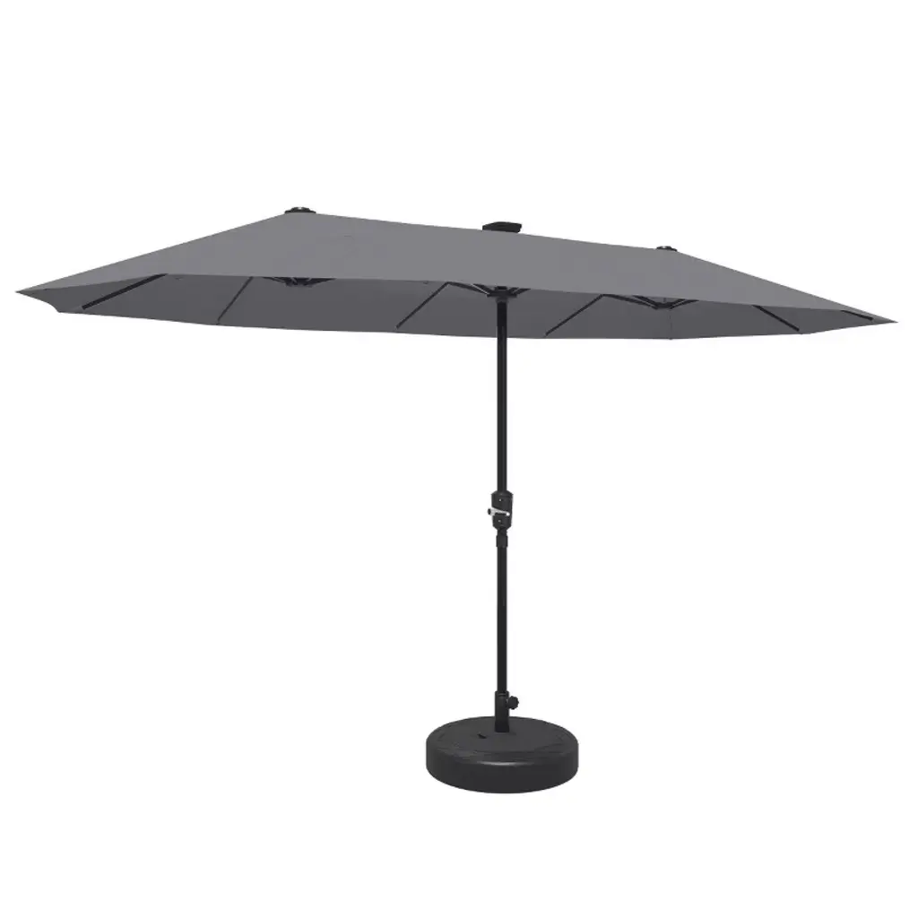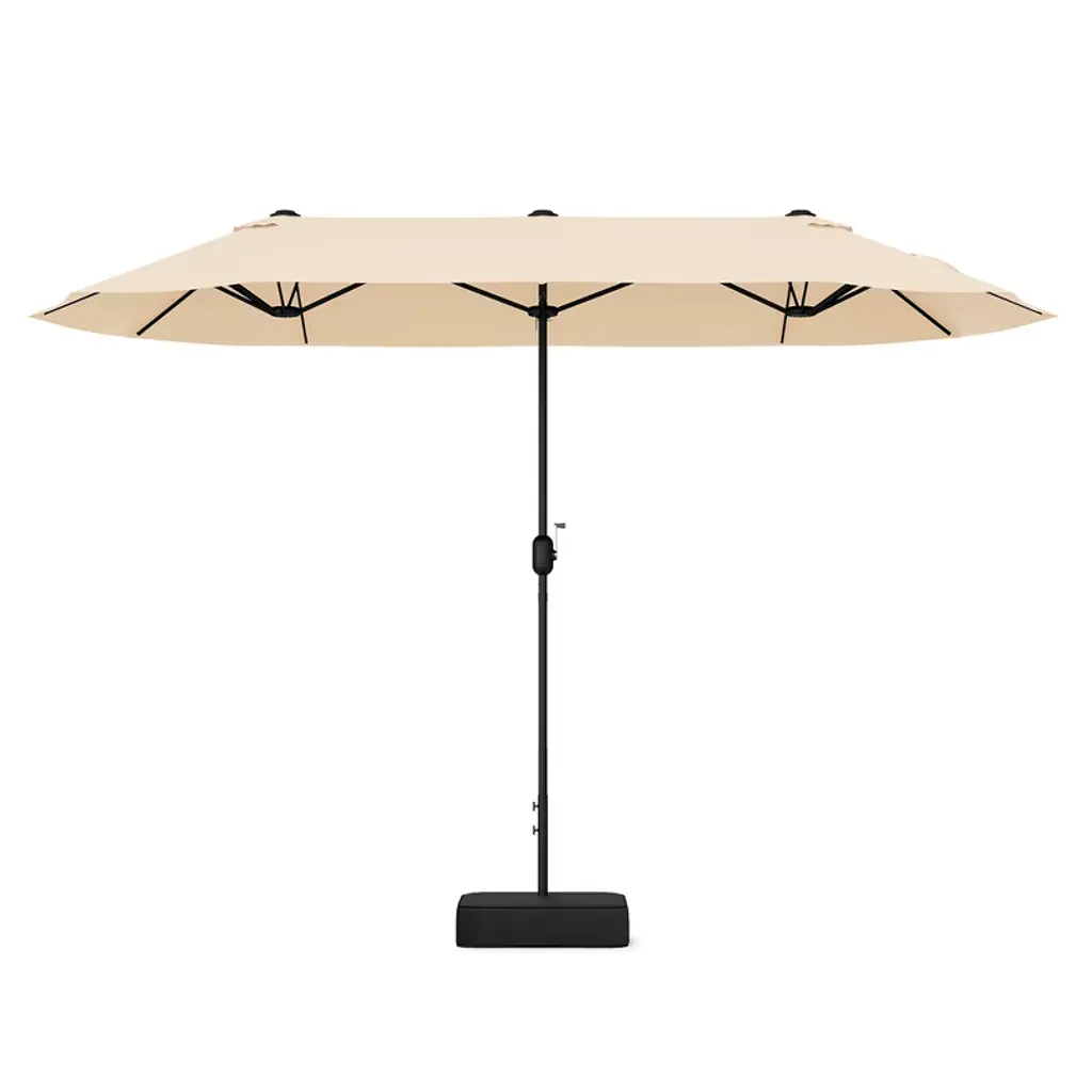 Creating a cool leisure zone with the patio cantilever umbrella! With impressive dimensions of 13' x 6.6', the double-sided patio umbrella provides an enlarged shading space to accommodate your patio furniture, making it perfect for party, commercial events and family gatherings. And the air vents will ensure a cool experience. Made of PA coated yarn-dyed fabric, the canopy is not easy to fade. The durable & UV-protective material will shield you from harmful rays and light rains. The stable heavy-duty frame ensure maximum stability even in windy conditions. Furthermore, there are 12 umbrella ribs to add wind-resistance. We provide an included fillable weighted stand. The large rectangular patio umbrella is equipped with a safety lock mechanism that prevents accidental folding.FeaturesIncluded fillable weighted stand adds stability Fixing strap for easy storage and folding Applicable to pool, deck, patio, garden, yardSpecifications:Color: Beige / Tan / Grey / Navy / Red Material: Metal, 180g Yarn Dyed Fabric, PA Coating Overall Size: 13' x 6.6' x 8'(L X W X H) Cross Base Size: 25.5" x 25.5"(L X W) Umbrella Ground Clearance: 6.8' Net Weight: 29.5 lbs Package includes: 1 x Dual-sided Patio Umbrella 1 x Umbrella Stand 1 x User's Guide
