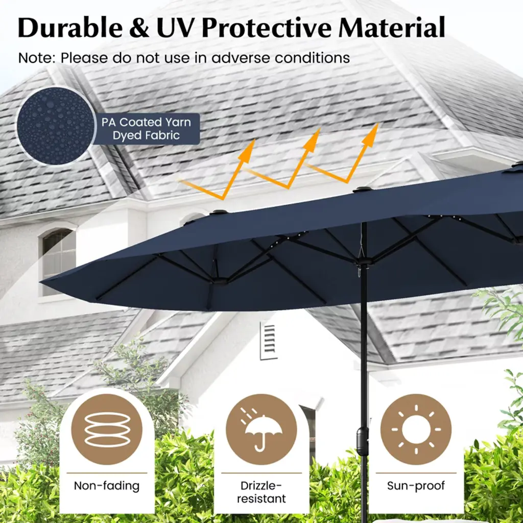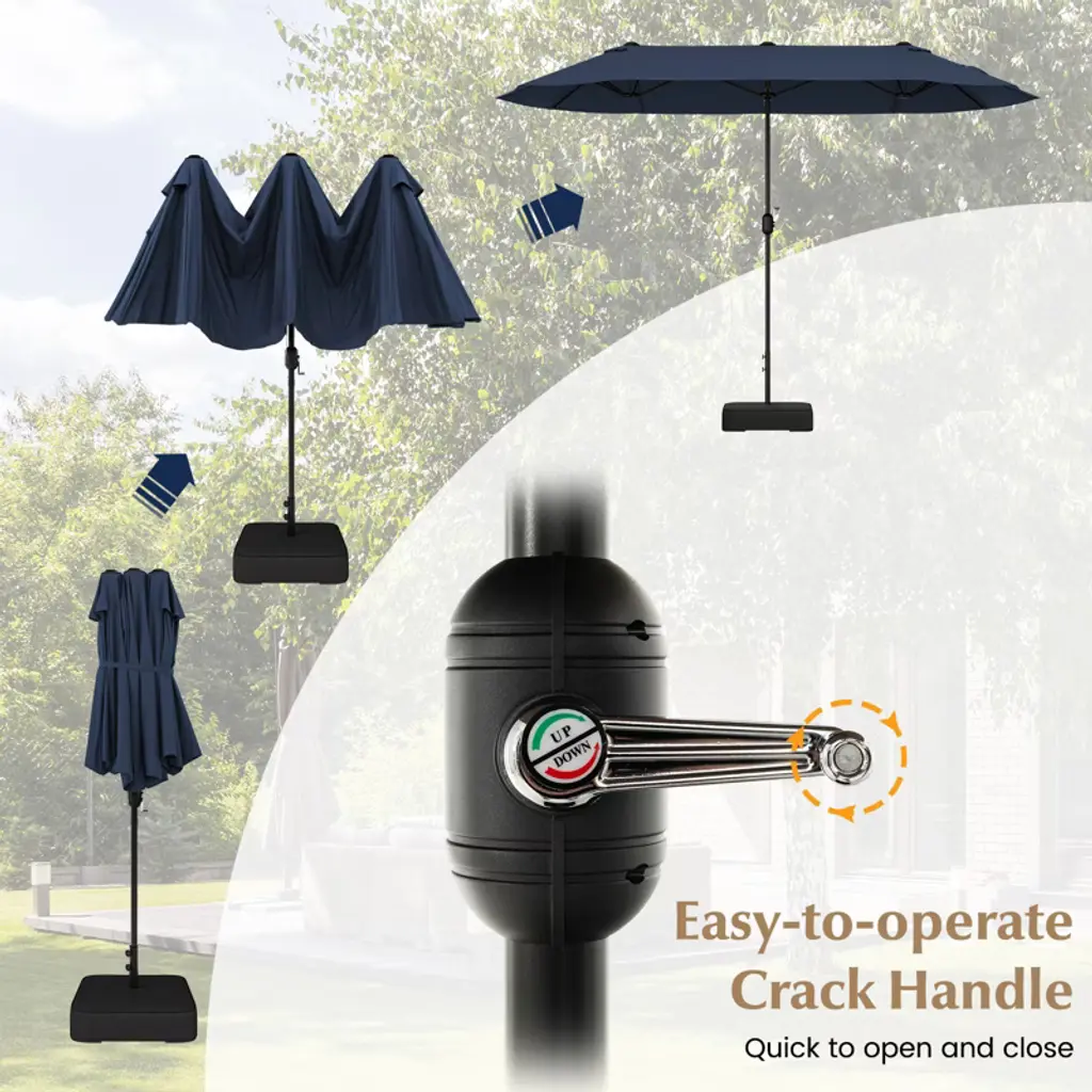 Tangkula 13ft Double-sided Patio Umbrella W/ Crank Handle Umbrella Base Safety Lock Navy