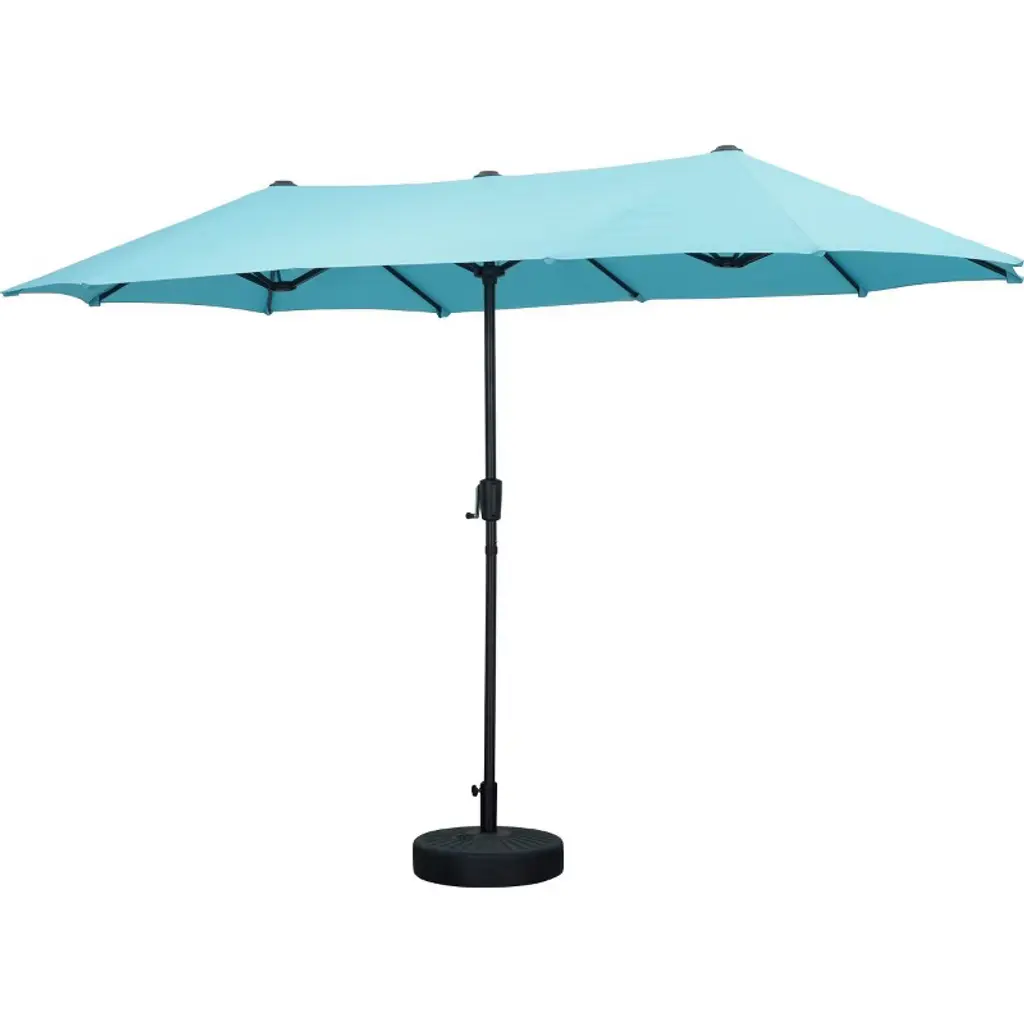 Creating a cool leisure zone with the patio cantilever umbrella! With impressive dimensions of 13' x 6.6', the double-sided patio umbrella provides an enlarged shading space to accommodate your patio furniture, making it perfect for party, commercial events and family gatherings. And the air vents will ensure a cool experience. Made of PA coated yarn-dyed fabric, the canopy is not easy to fade. The durable & UV-protective material will shield you from harmful rays and light rains. The stable heavy-duty frame ensure maximum stability even in windy conditions. Furthermore, there are 12 umbrella ribs to add wind-resistance. We provide an included fillable weighted stand. The large rectangular patio umbrella is equipped with a safety lock mechanism that prevents accidental folding.FeaturesIncluded fillable weighted stand adds stability Fixing strap for easy storage and folding Applicable to pool, deck, patio, garden, yardSpecifications:Color: Beige / Tan / Grey / Navy / Red Material: Metal, 180g Yarn Dyed Fabric, PA Coating Overall Size: 13' x 6.6' x 8'(L X W X H) Cross Base Size: 25.5" x 25.5"(L X W) Umbrella Ground Clearance: 6.8' Net Weight: 29.5 lbs Package includes: 1 x Dual-sided Patio Umbrella 1 x Umbrella Stand 1 x User's Guide