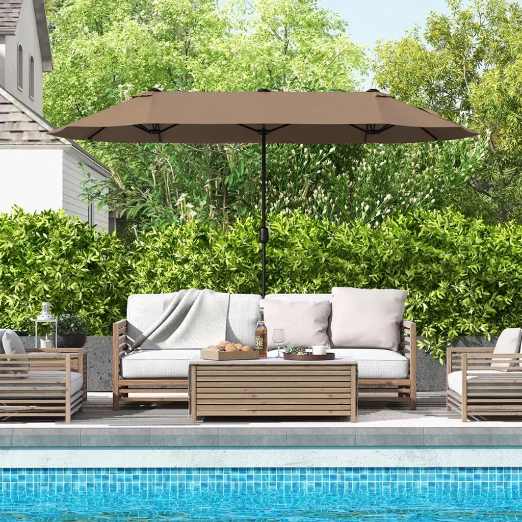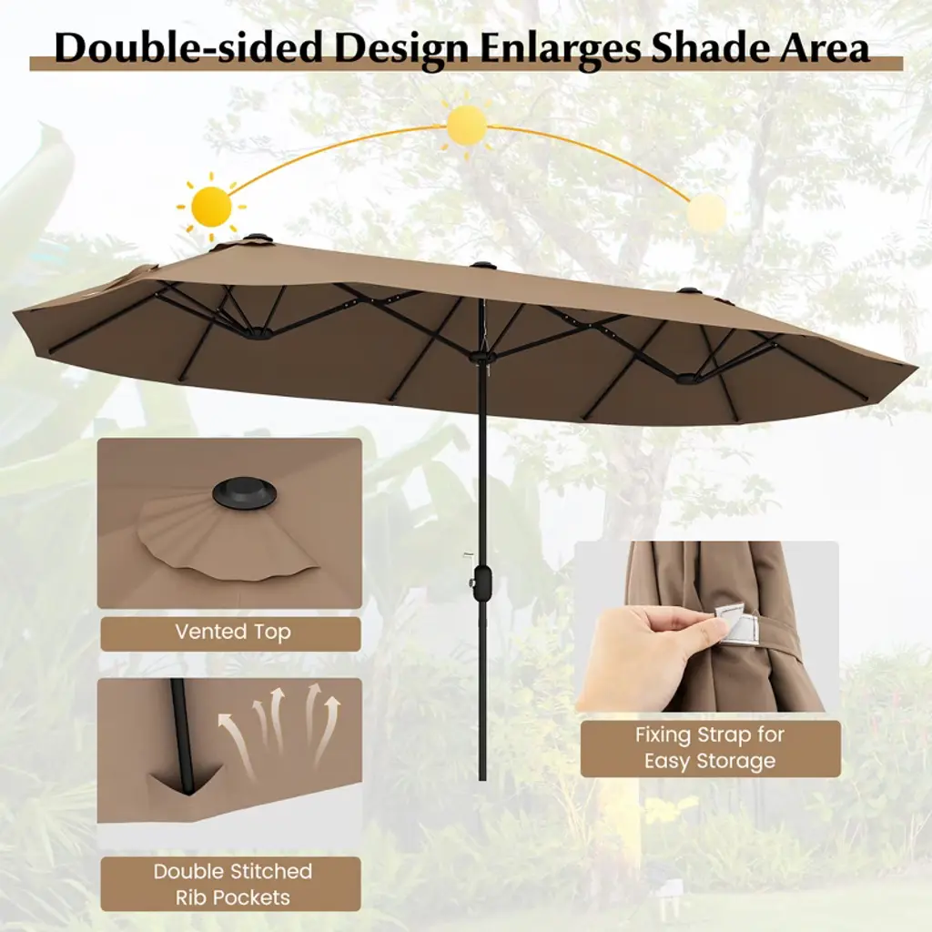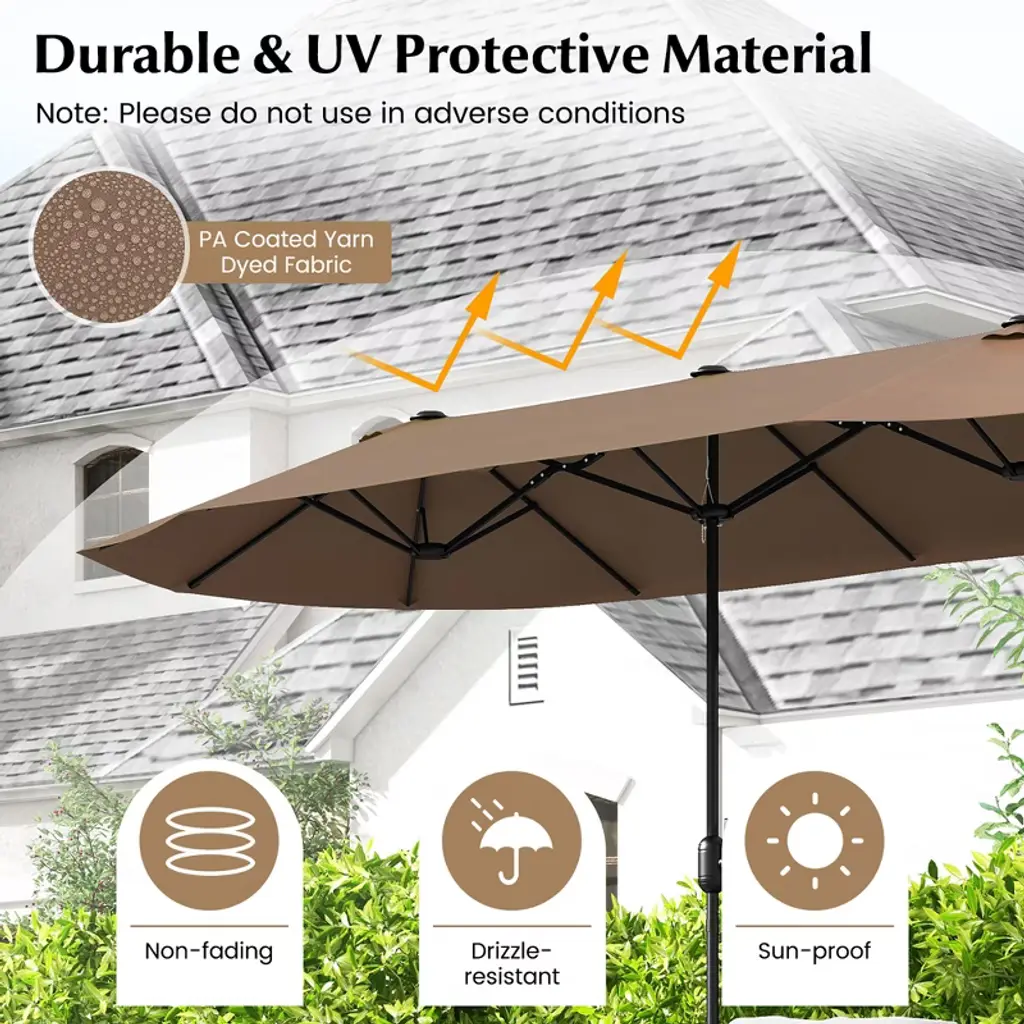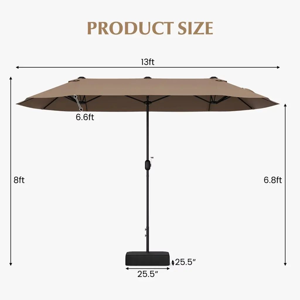 Tangkula 13ft Double-sided Patio Umbrella W/ Crank Handle Umbrella Base Safety Lock Tan