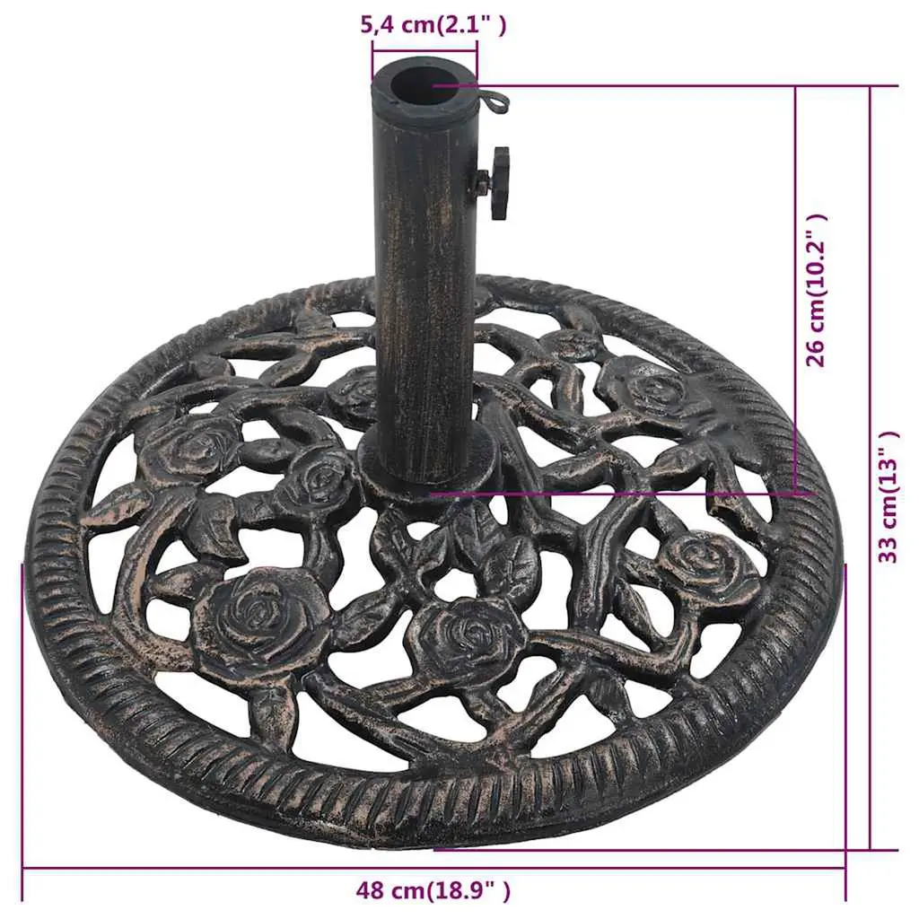 Vidaxl Umbrella Base Bronze Cast Iron 18.9 In Diameter Umbrella Base