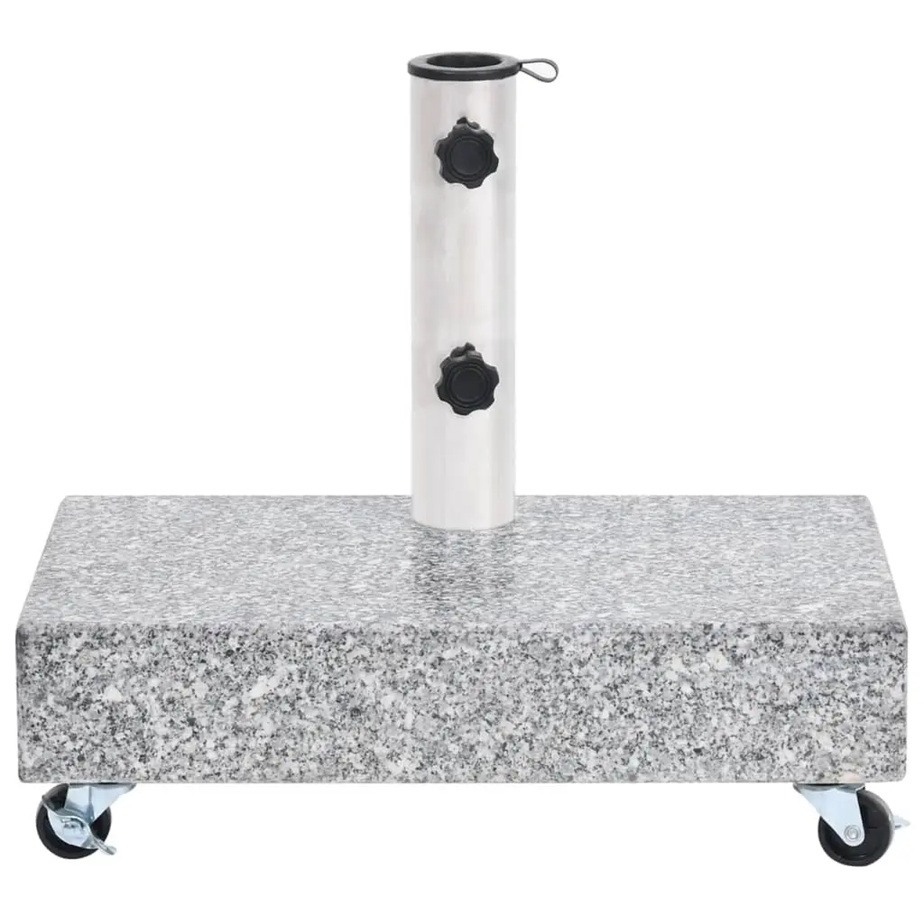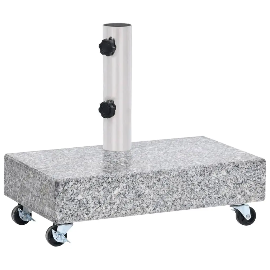This umbrella base gives solid stability for outdoor umbrellas, keeping them upright on windy days and providing shade on hot afternoons. Its modern look and smooth surface really brighten up outdoor spots like patios, balconies, and gardens, blending style with practicality. Heavy-Duty Construction: This umbrella base is built to hold heavier umbrellas steadily, ensuring your outdoor area stays protected and enjoyable.Wheels for Easy Movement: With sturdy wheels, you can move your umbrella base around easily as the sun shifts, helping you get all the shade you need.Weather Resistant: Made from granite and stainless steel, this umbrella holder resists UV rays and heat, so it lasts and looks good through all seasons.Sleek Modern Design: The light grey polished finish matches various outdoor styles, adding elegance to your garden, balcony, or conservatory while keeping a minimalist vibe.Optimal Dimensions: At 17.7 x 9.8 x 3.3 in, this standard umbrella base is just right for most patio umbrellas, providing enough weight yet easy to handle.