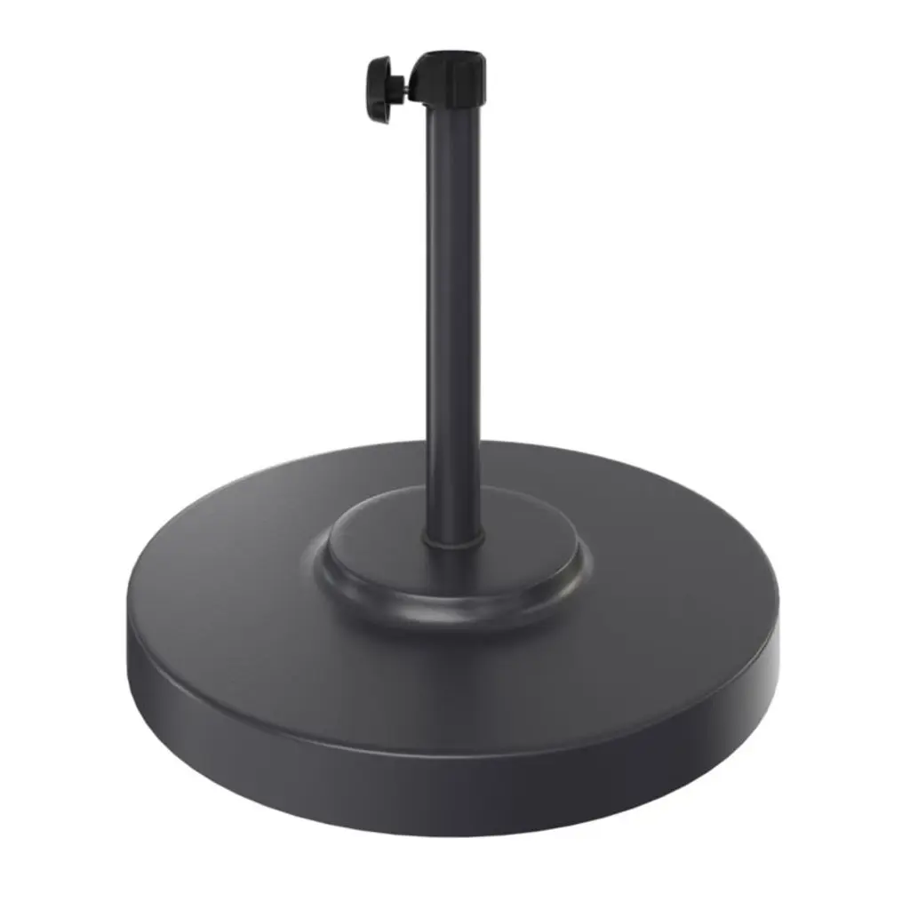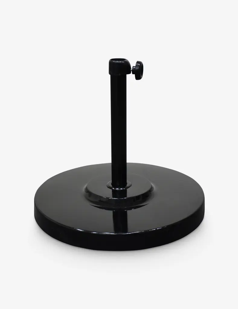 Crisp white outdoor umbrella base keeps umbrellas in their proper place. Designed to secure freestanding and table umbrellas alike, rust-resistant steel and cement base is durable and well-suited for patio, pool area and outdoor spaces in between.