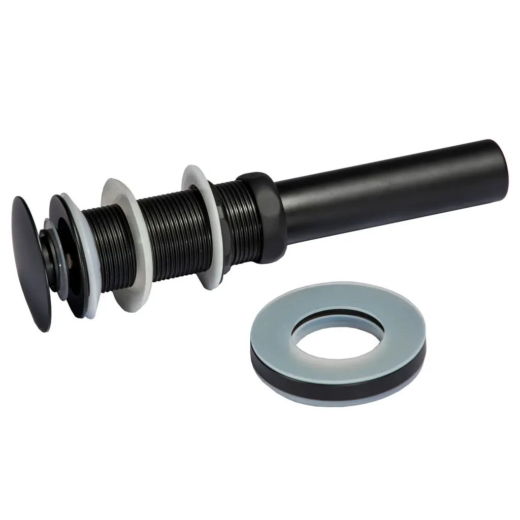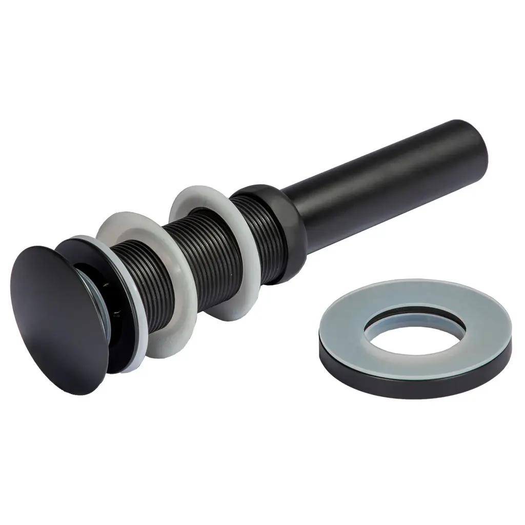 The 1 5/8" Umbrella Pop Up Drain and Mounting Ring in Matte Black by Eden Bath is a stylish and functional addition to your bathroom sink. This pop-up drain operates with a soft-touch method, allowing you to easily open and close it by pressing down on the top. The spring-loaded mechanism and rubber gasket ensure a tight seal, preventing any water leakage. Designed to work with most vessel sinks that have a drain hole 1 5/8" in diameter or larger and a rounded sink bottom, this drain does not require a separate pop-up drain lever. With its sleek Matte Black finish, this drain will add a touch of elegance to your bathroom decor.Features: